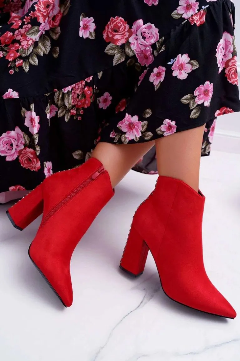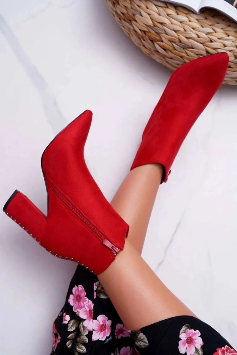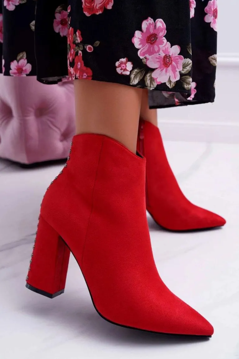 Botki Damskie Na Obcasie Z Nitami W Szpic Czerwone Snack