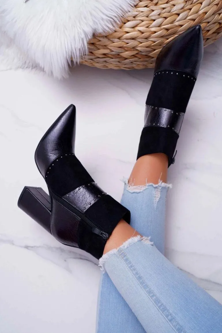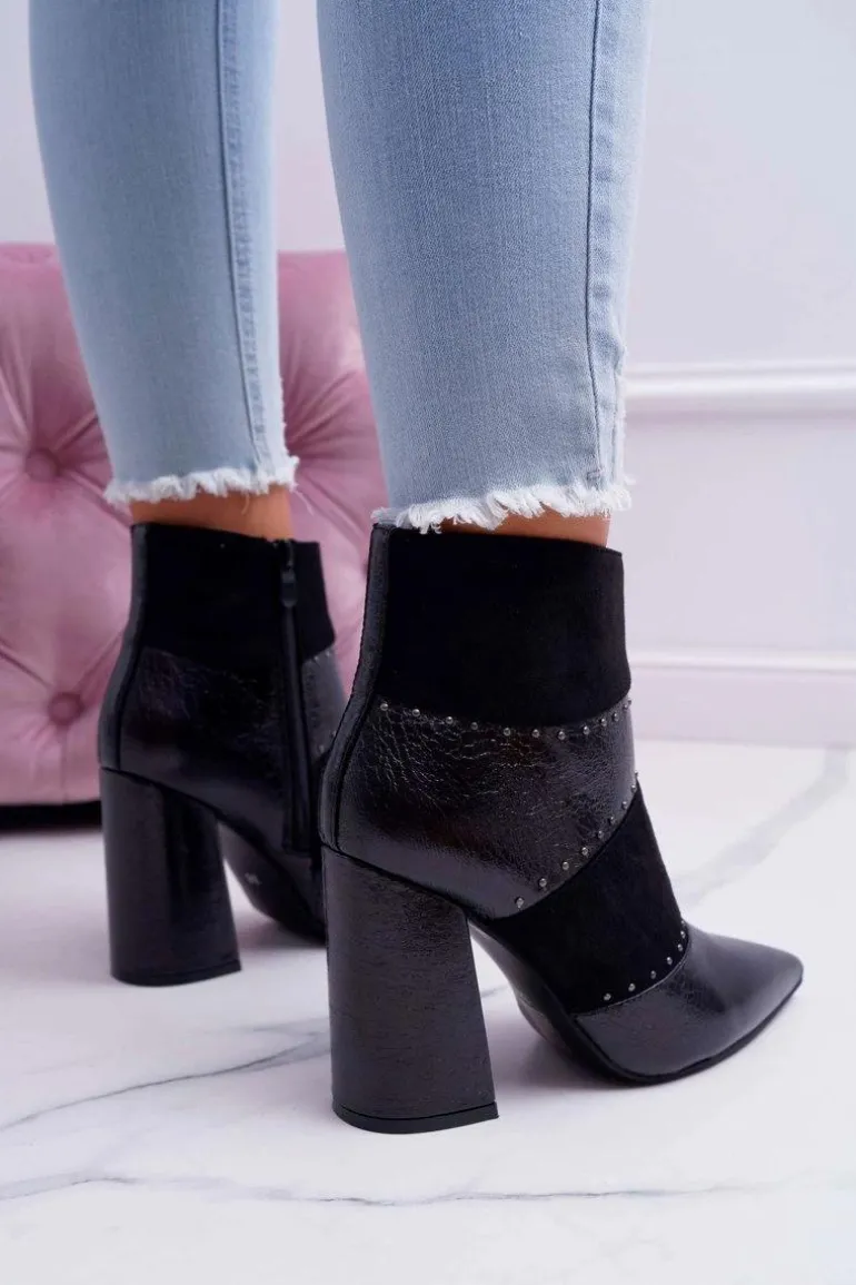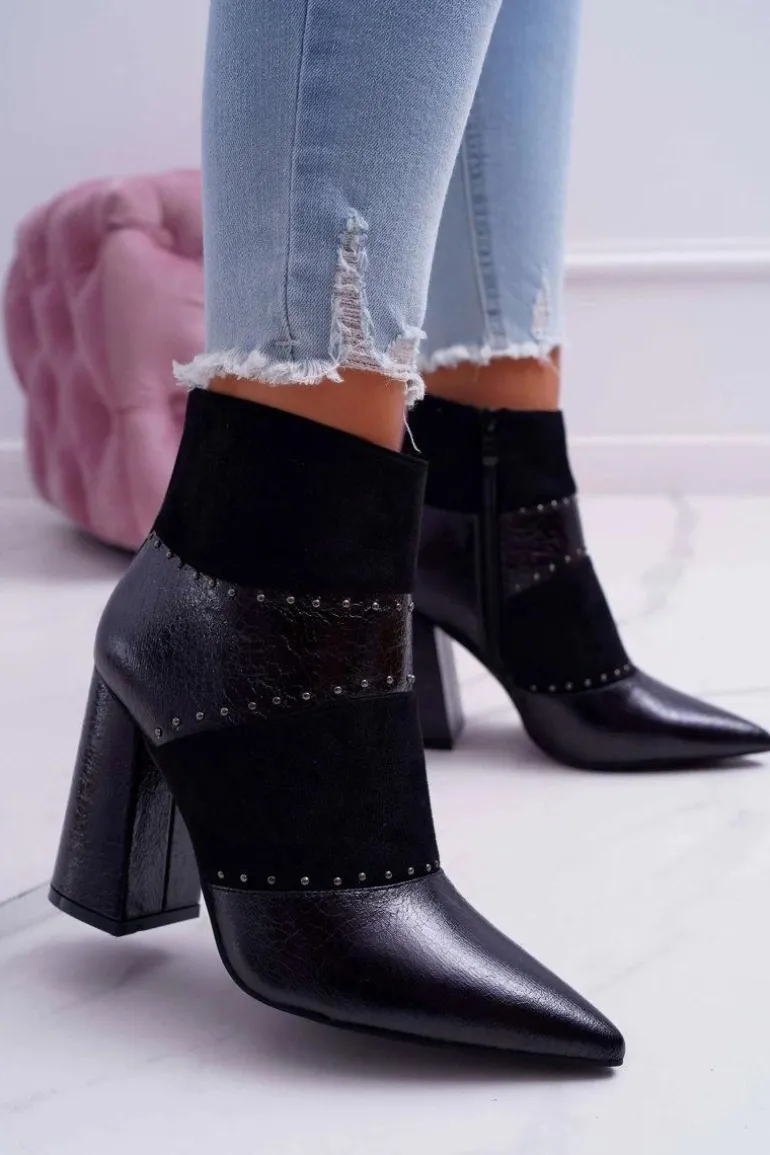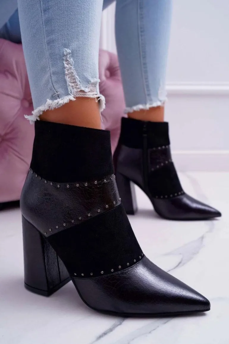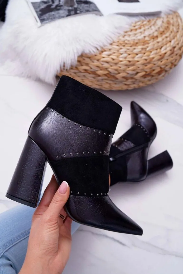 Botki Damskie Na Obcasie Z Nitami W Szpic RB21P Czarne Yango