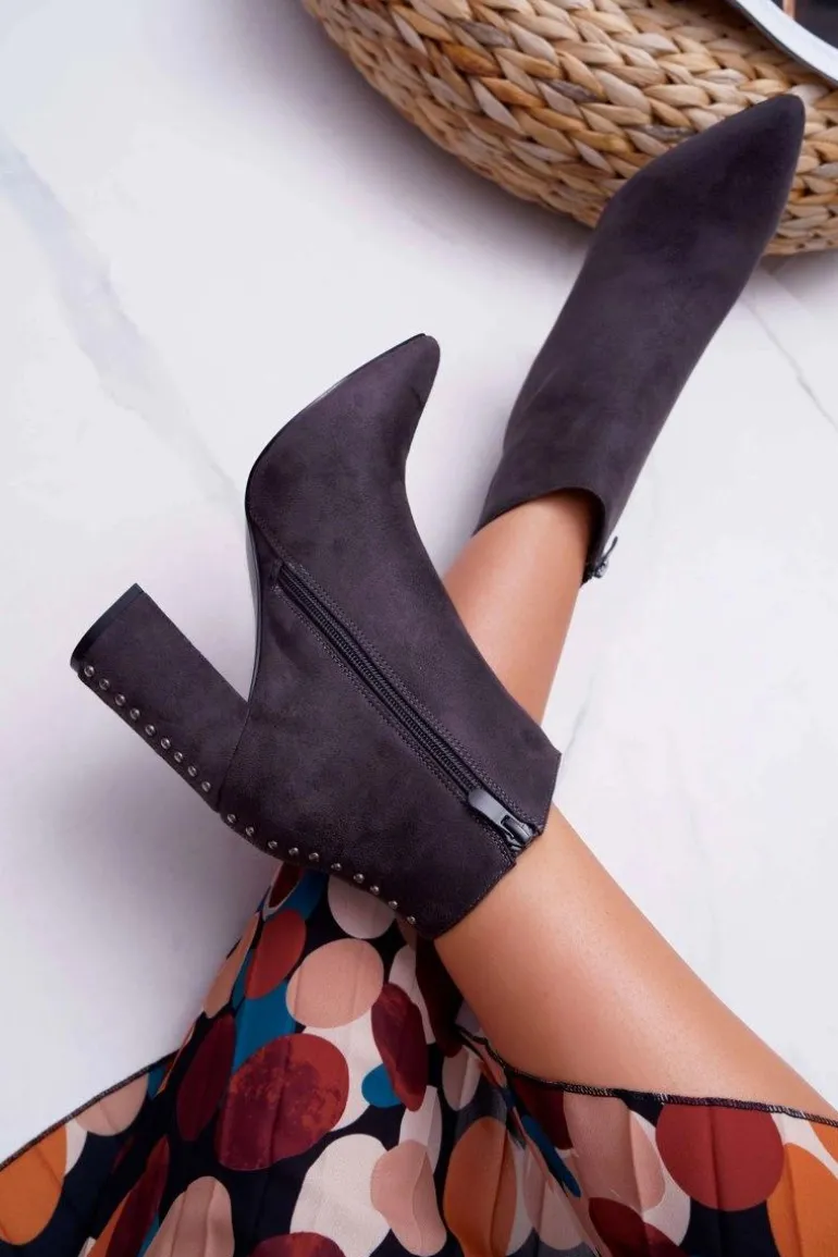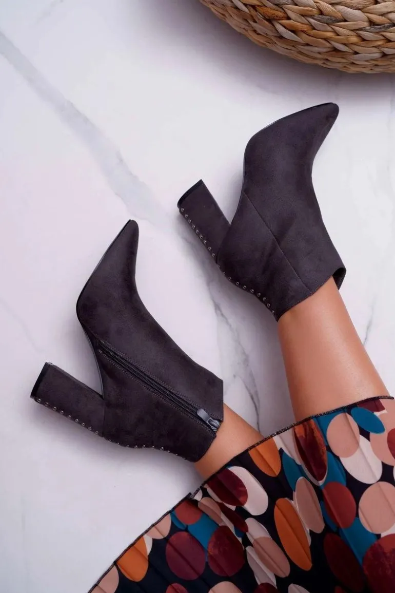 Botki Damskie Na Obcasie Z Nitami W Szpic Szare Snack