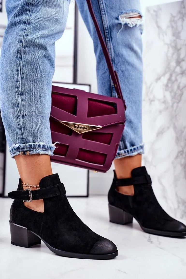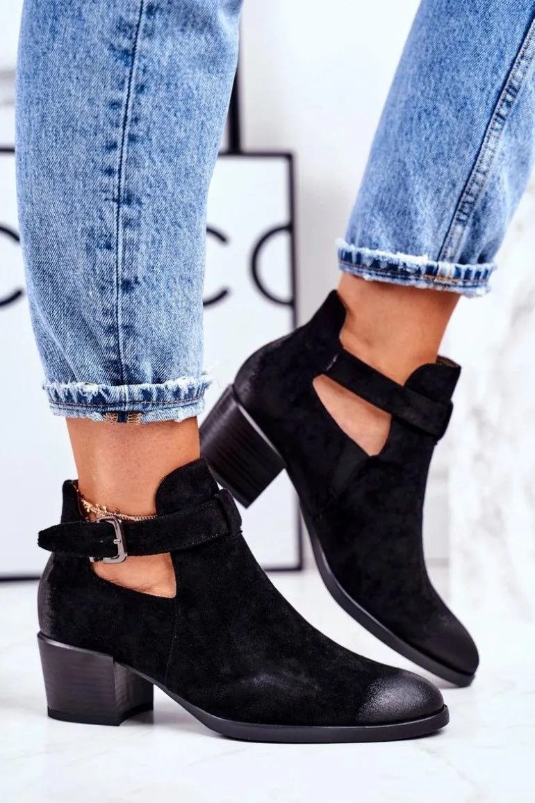 Botki Damskie Na Obcasie Z Wycięciami Czarne Sicily
