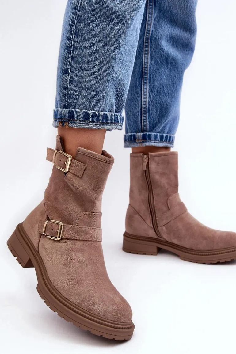 Klasyczne botki damskie z cholewką za kostkę. Osadzone na płaskim obcasie. Zapinane na suwak z boku. Noski zaokrąglone. Zapiętek usztywniony. Cholewka ozdobiona paskami z klamrą. Miękka eko skórzana wkładka zapewni komfort podczas użytkowania. Idealne do wielu jesiennych stylizacji! Przy wyborze rozmiaru prosimy sugerować się tabelą rozmiarów.