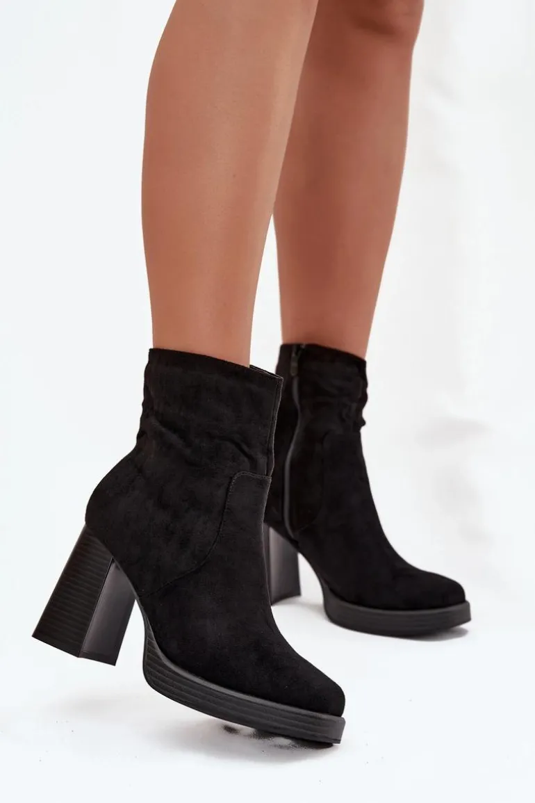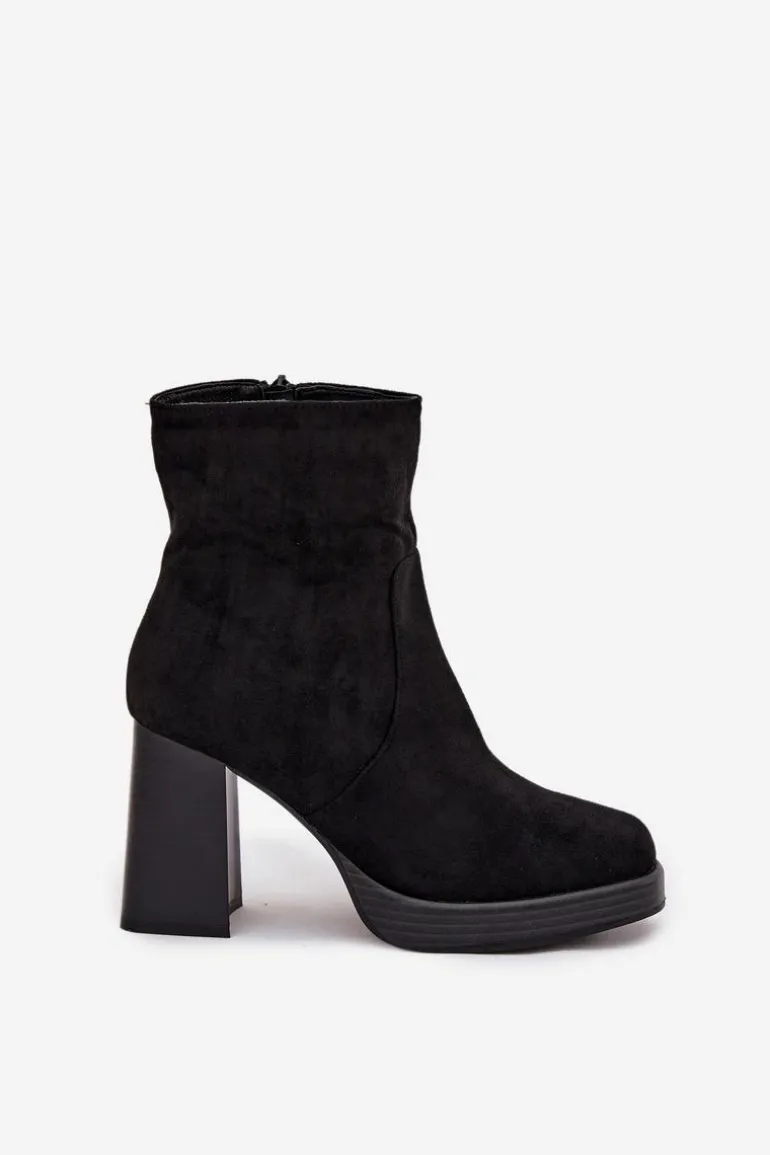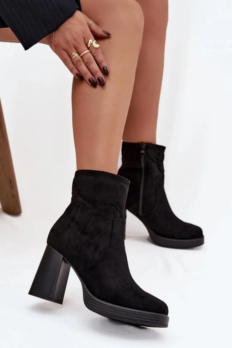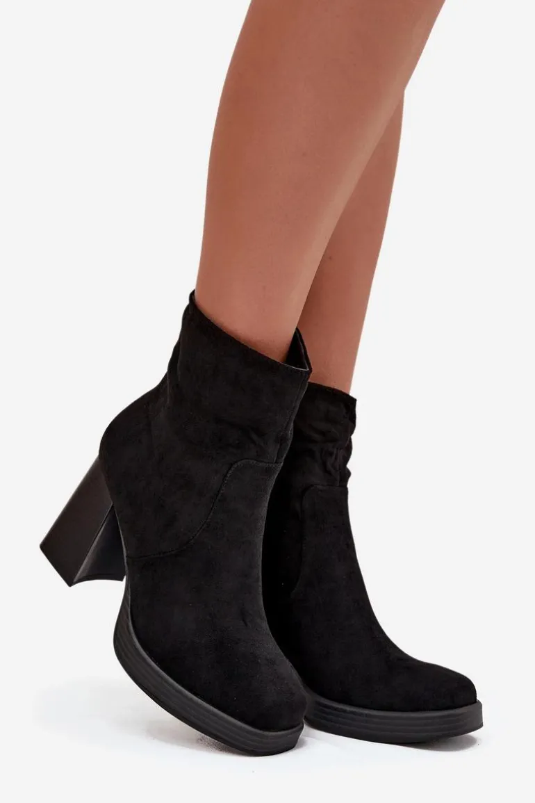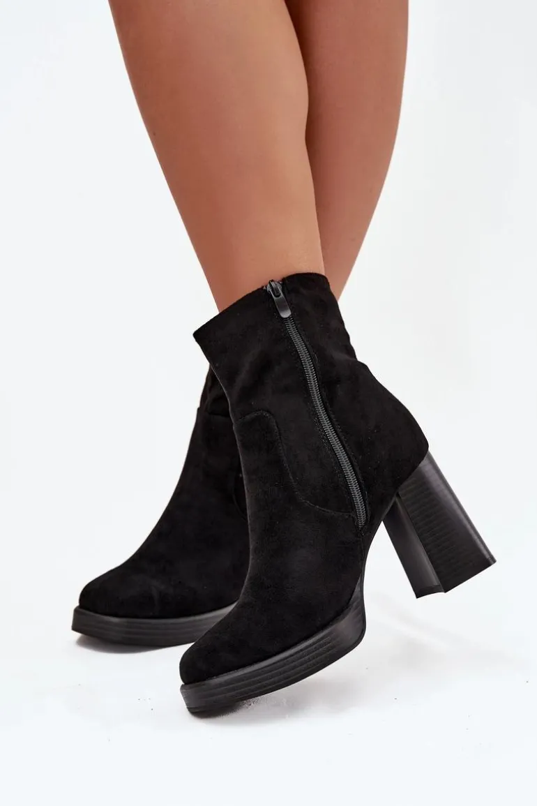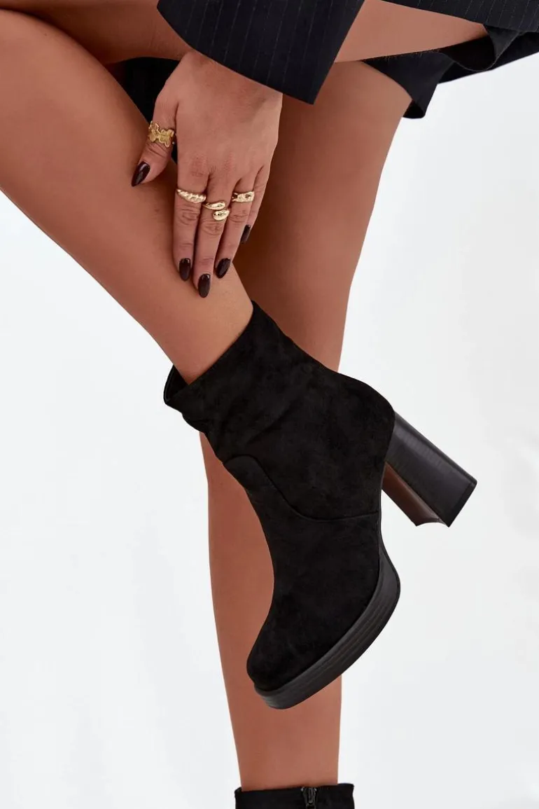 Botki damskie wykonane z eko zamszu to elegancka propozycja na sezon jesienno-zimowy. Model osadzony na stabilnym obcasie typu słupek zapewnia wygodę i pewność kroku, jednocześnie delikatnie wysmuklając sylwetkę. Buty zapinane są na zamek, co ułatwia ich zakładanie i zdejmowanie. Zaokrąglone noski nadają całości klasycznego, kobiecego charakteru. To uniwersalne botki, które świetnie sprawdzą się zarówno w codziennych, jak i bardziej eleganckich stylizacjach. Przy wyborze rozmiaru prosimy sugerować się tabelą rozmiarów.