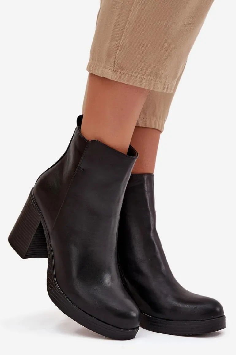Botki damskie wykonane z eko skóry. Osadzone na stabilnym obcasie typu słupek, zapewniają komfort noszenia i dodają sylwetce subtelnej lekkości. Klasyczny fason sprawia, że doskonale pasują do wielu stylizacji – od codziennych po bardziej eleganckie. Zamek z boku ułatwia zakładanie i zdejmowanie butów. To uniwersalne botki, które sprawdzą się w każdej garderobie. Przy wyborze rozmiaru prosimy sugerować się tabelą rozmiarów.