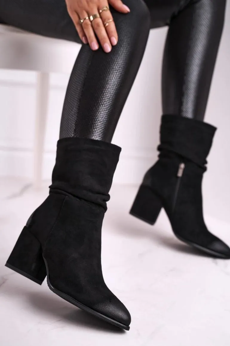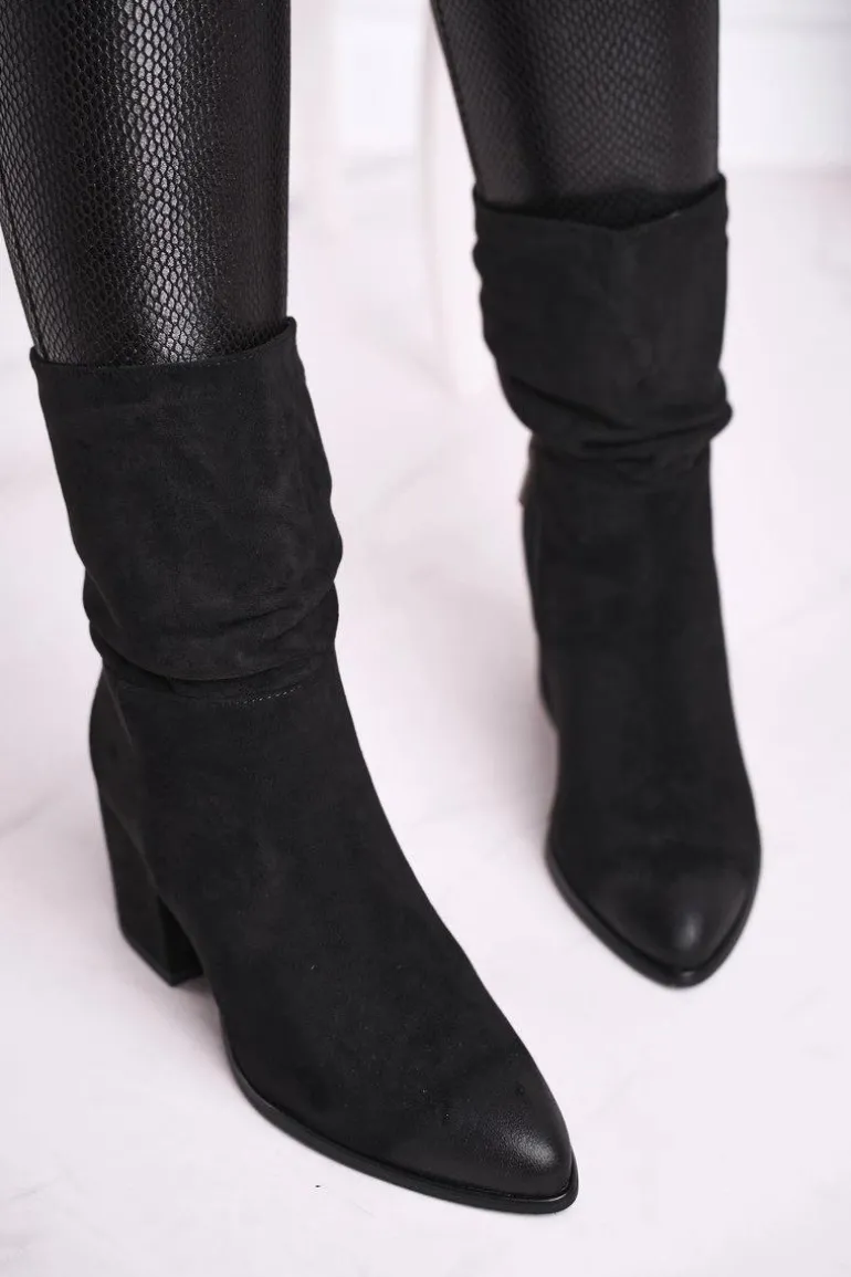Botki Damskie Na Słupku Eko-Zamsz Czarne Up Side