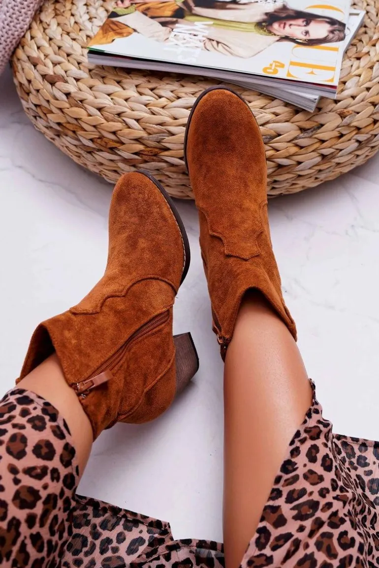 Botki Damskie Na Słupku Kowbojki Camel Nutriso