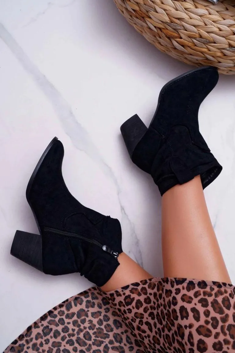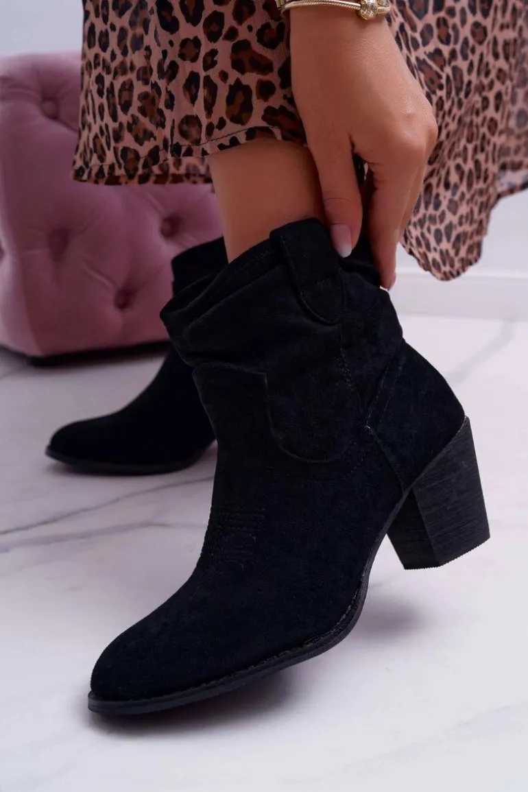 Botki Damskie Na Słupku Kowbojki Czarne Maverick