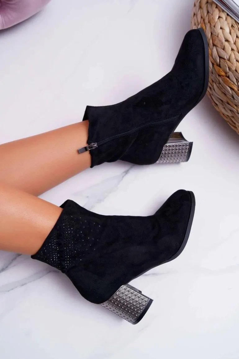 Botki Damskie Na Słupku Kryształki Czarne Homesa