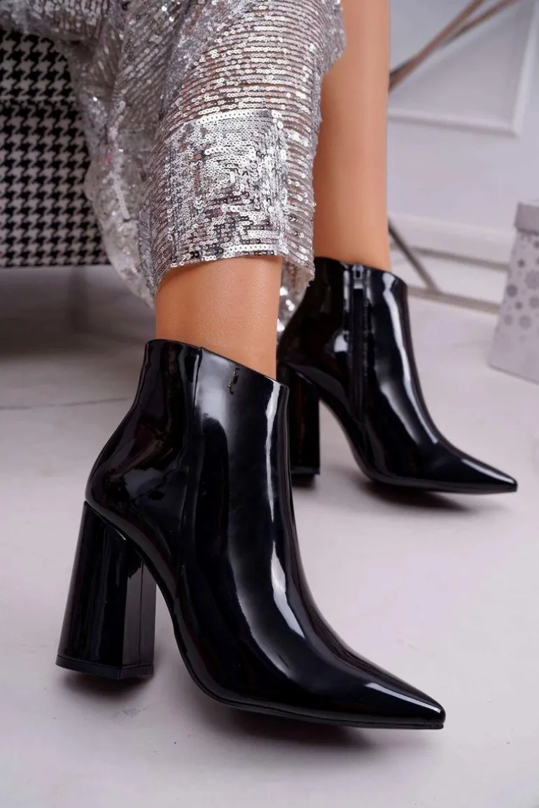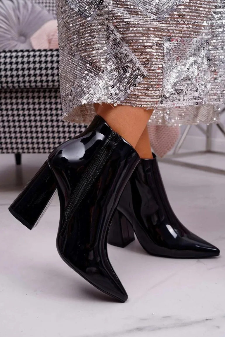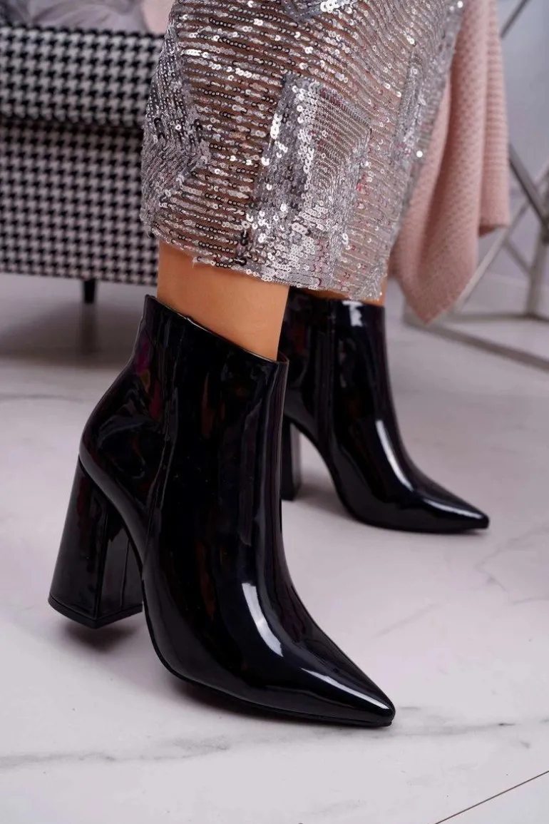 Botki Damskie Na Słupku Lakierowane Czarne Ferty
