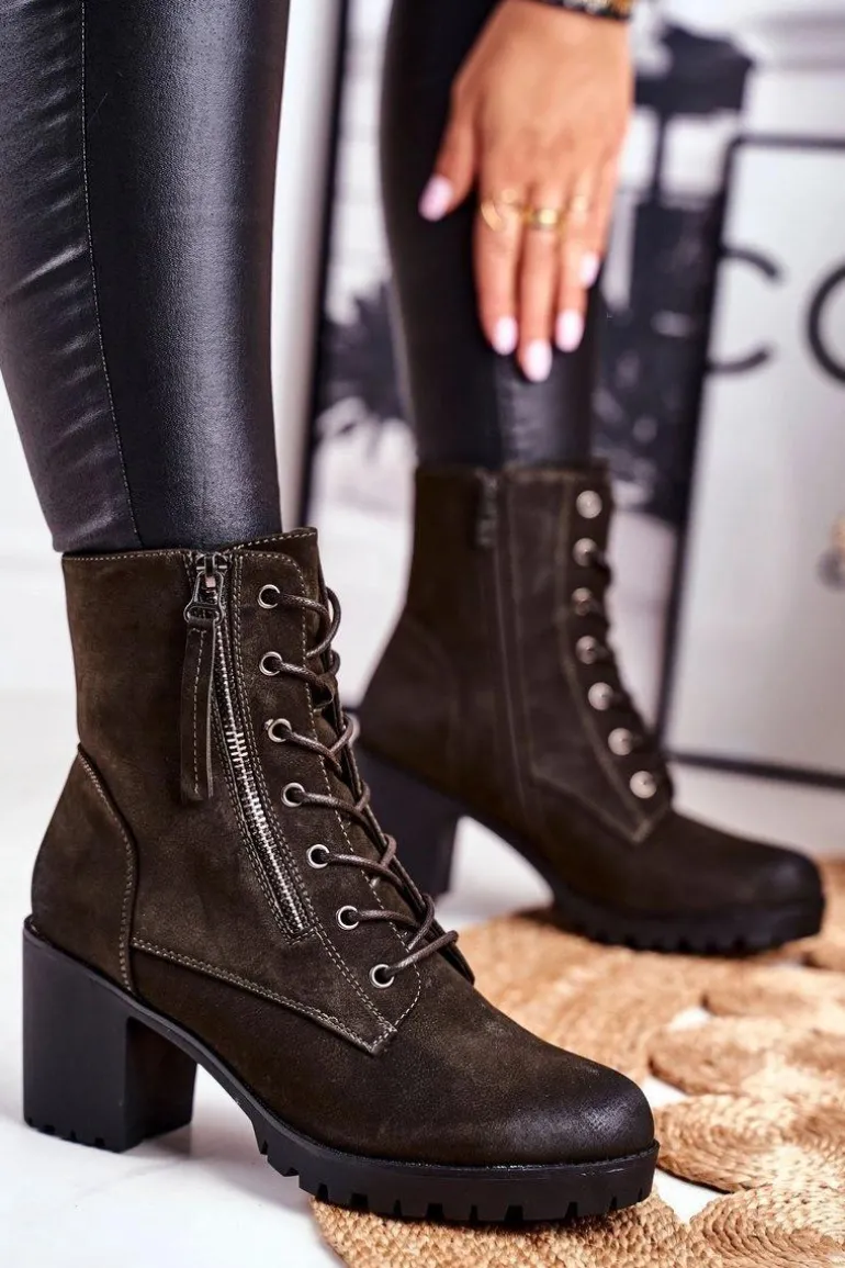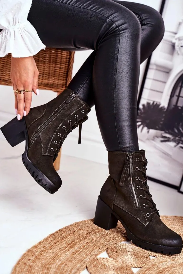 Botki Damskie Na Słupku Ocieplane Khaki Vimen