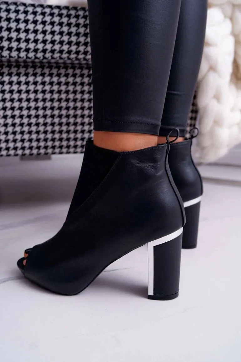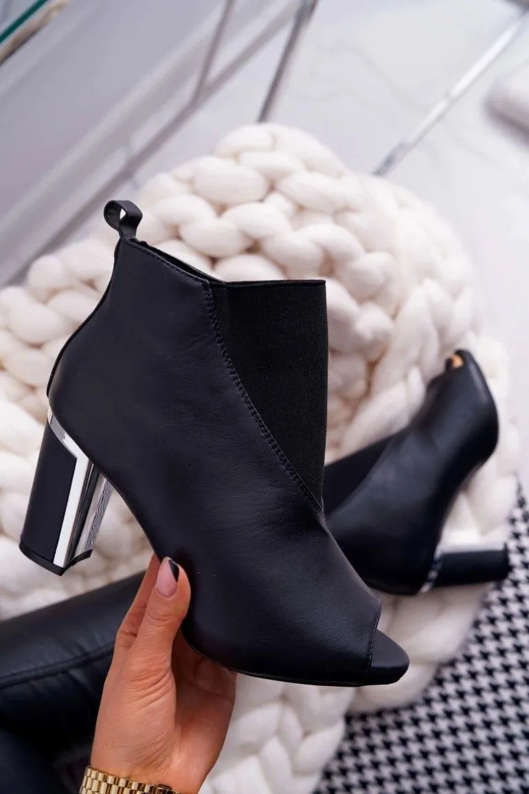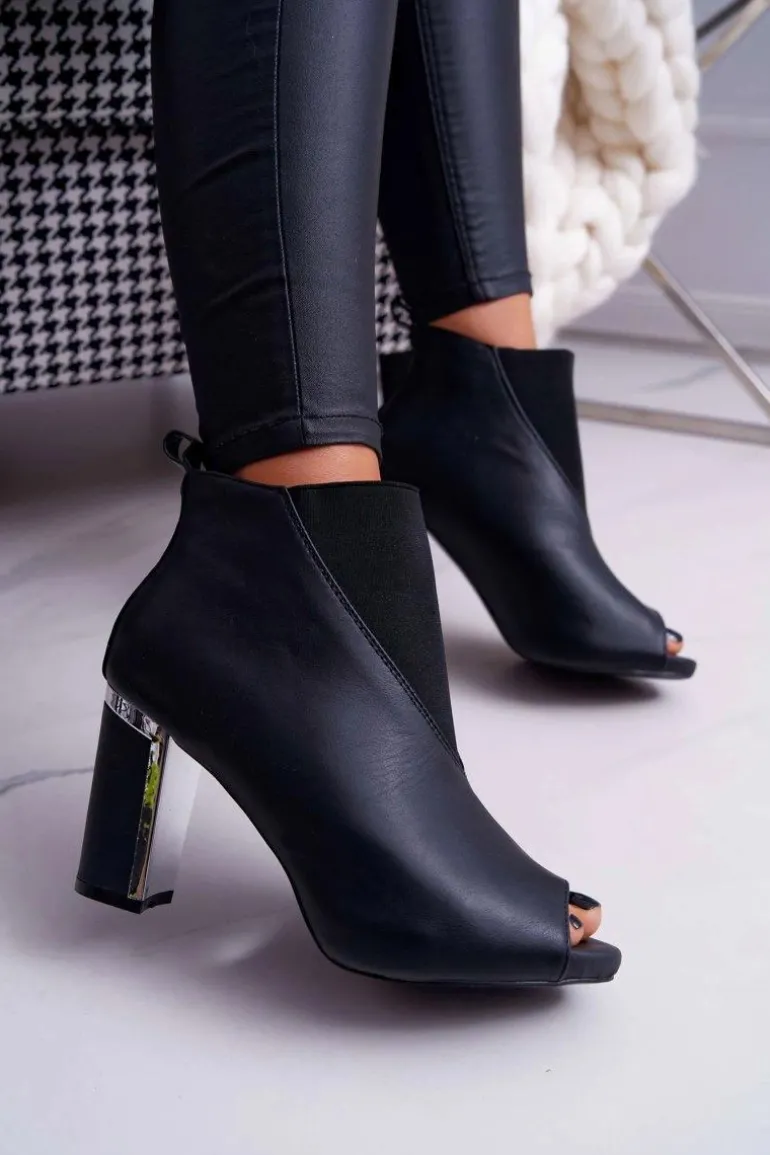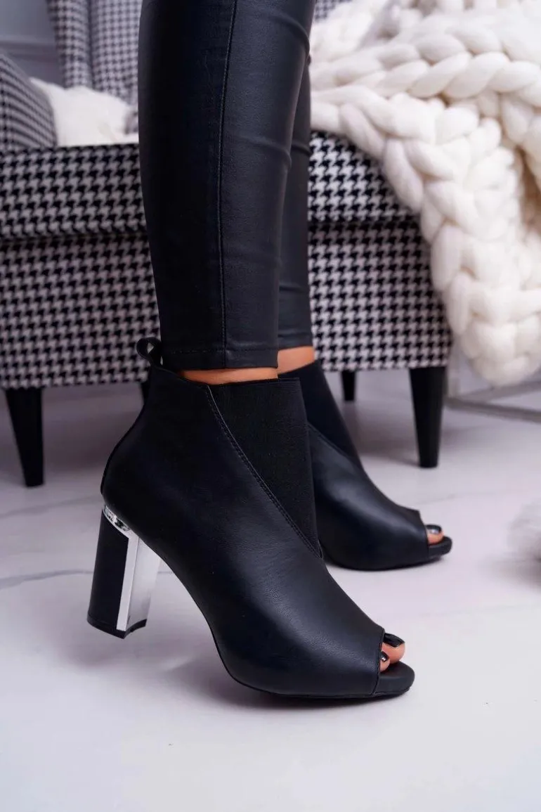 Botki Damskie na Słupku Odkryte Palce Wsuwane Czarne Germen