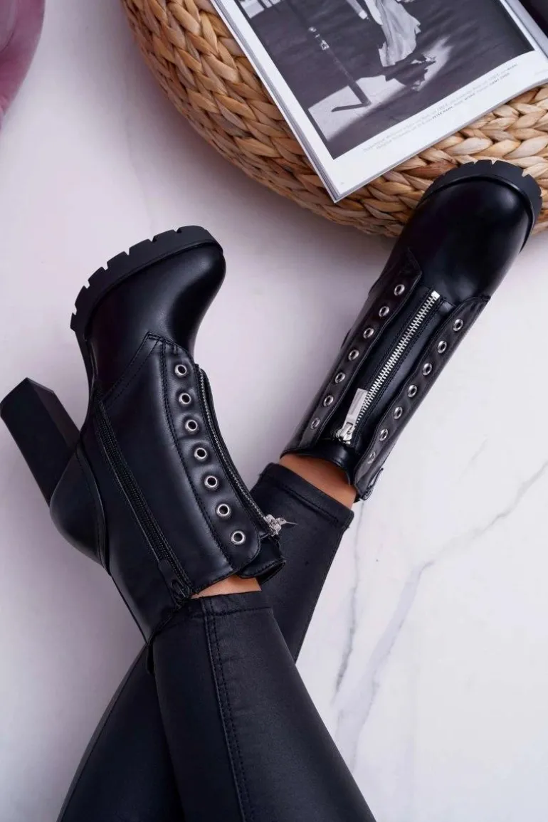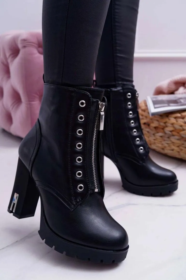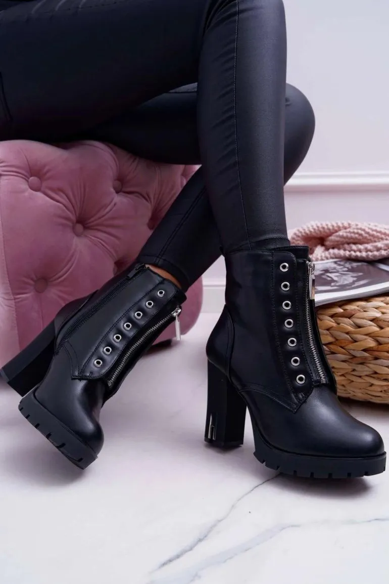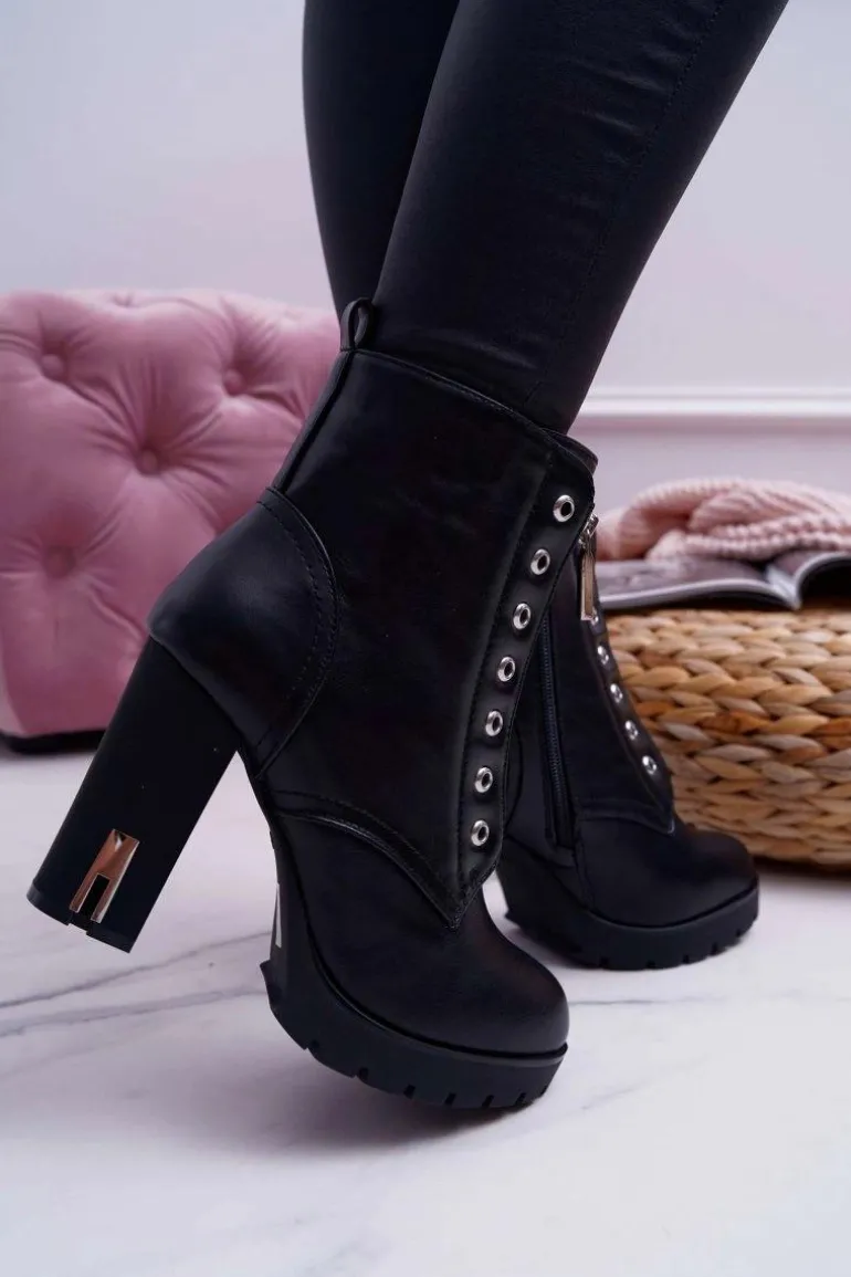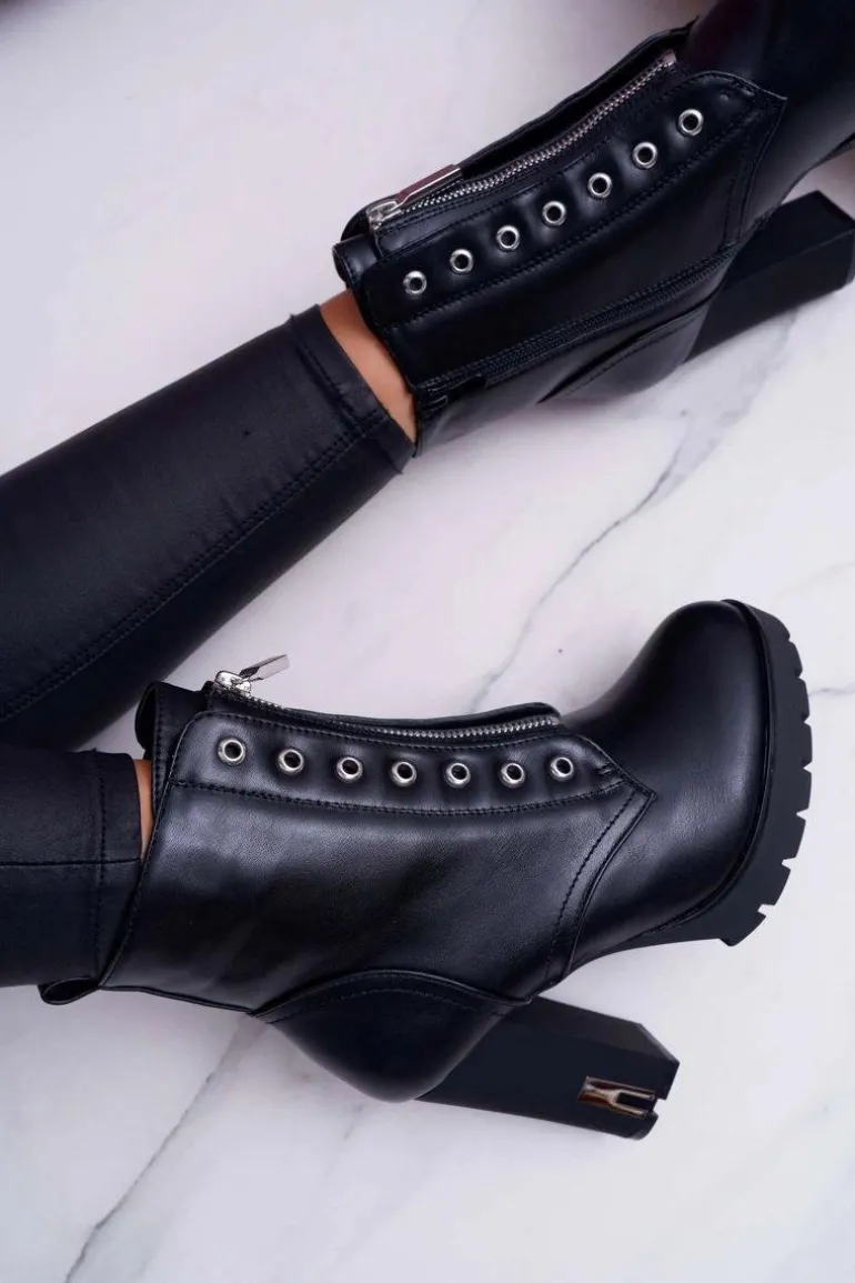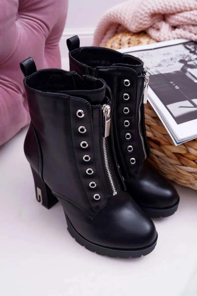 Botki Damskie Na Słupku Ozdobny Suwak Czarne Imagine