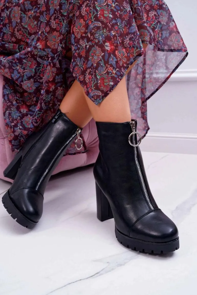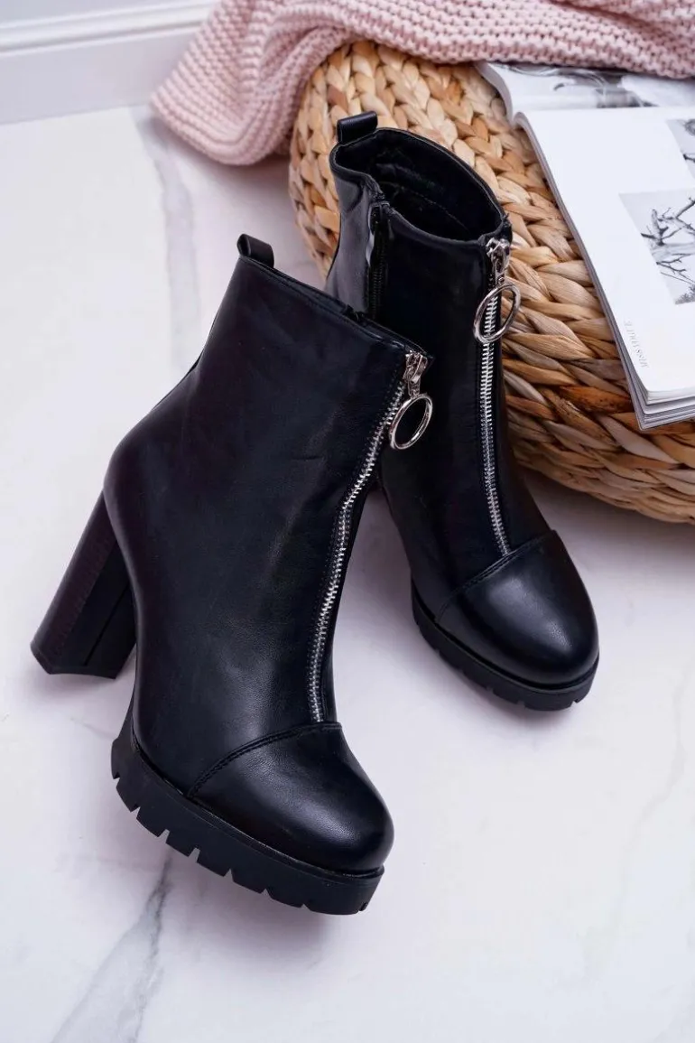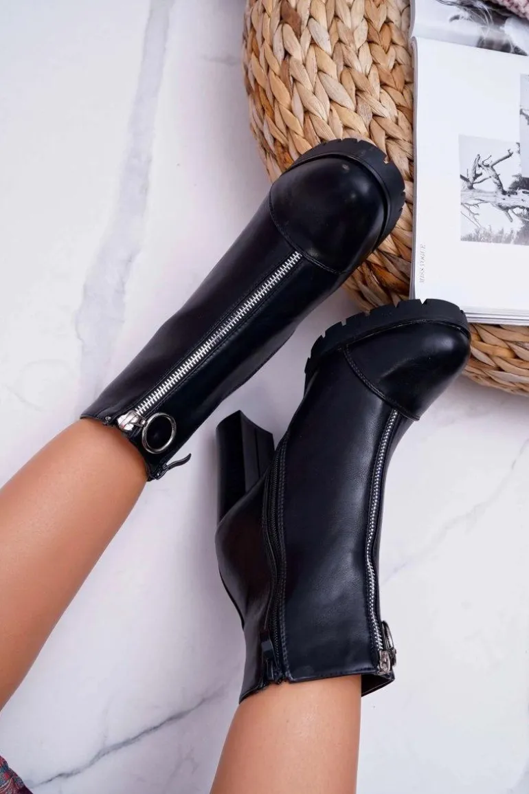 Botki Damskie Na Słupku Ozdobny Suwak Czarne Senuto