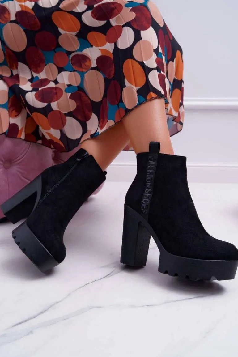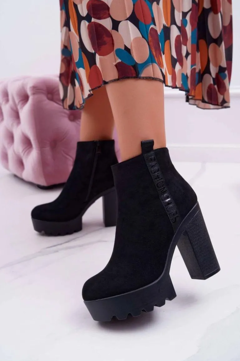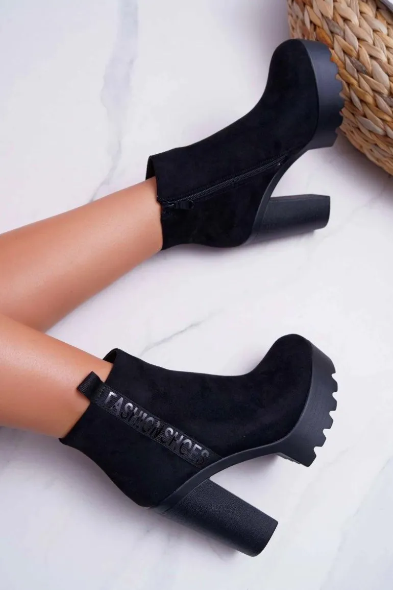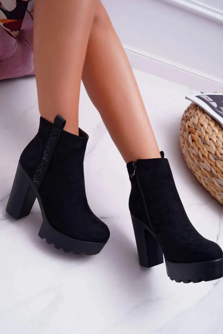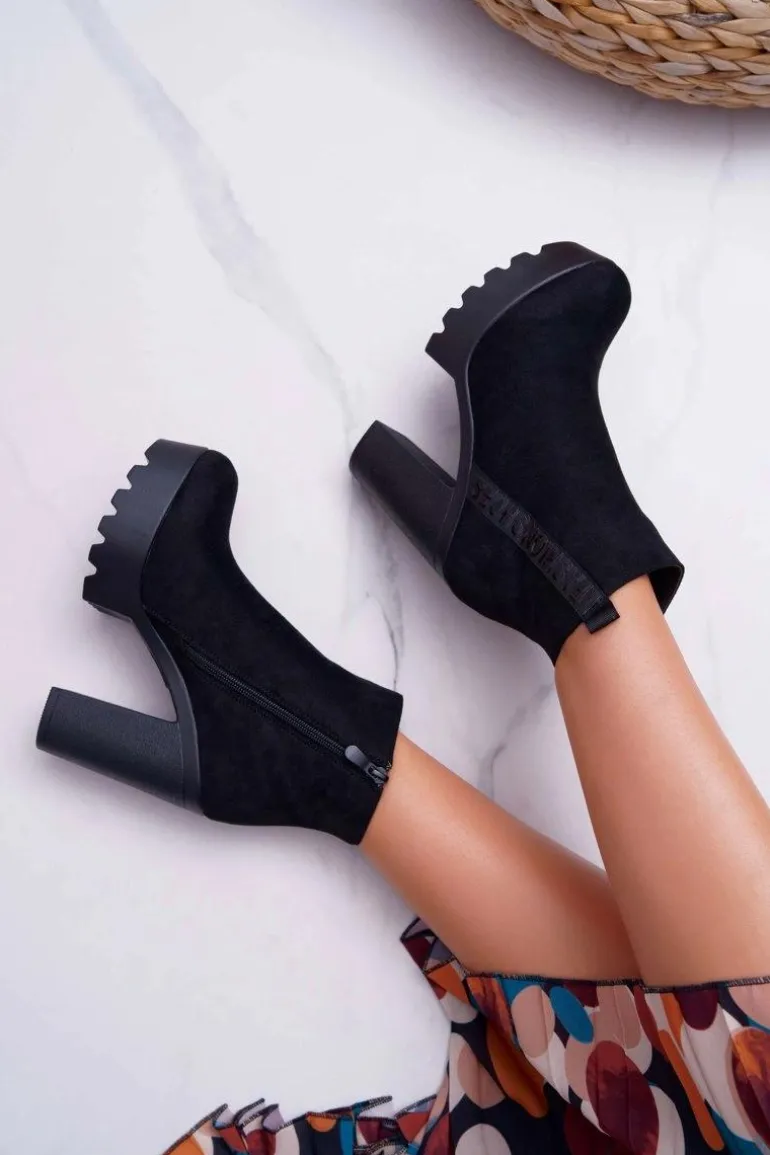 Botki Damskie na Słupku Platforma Zamszowe Czarne Estacado