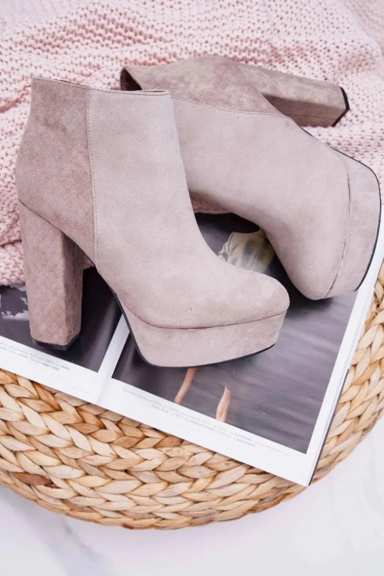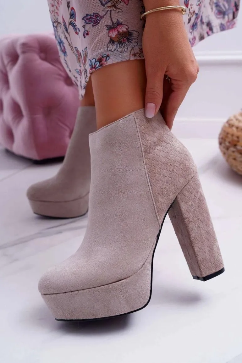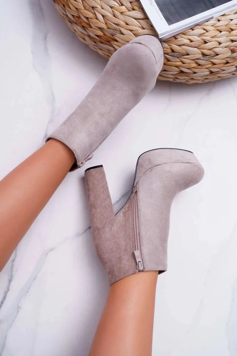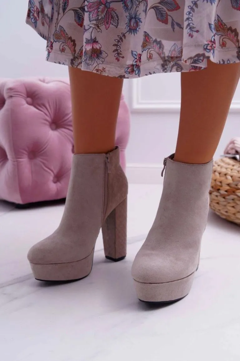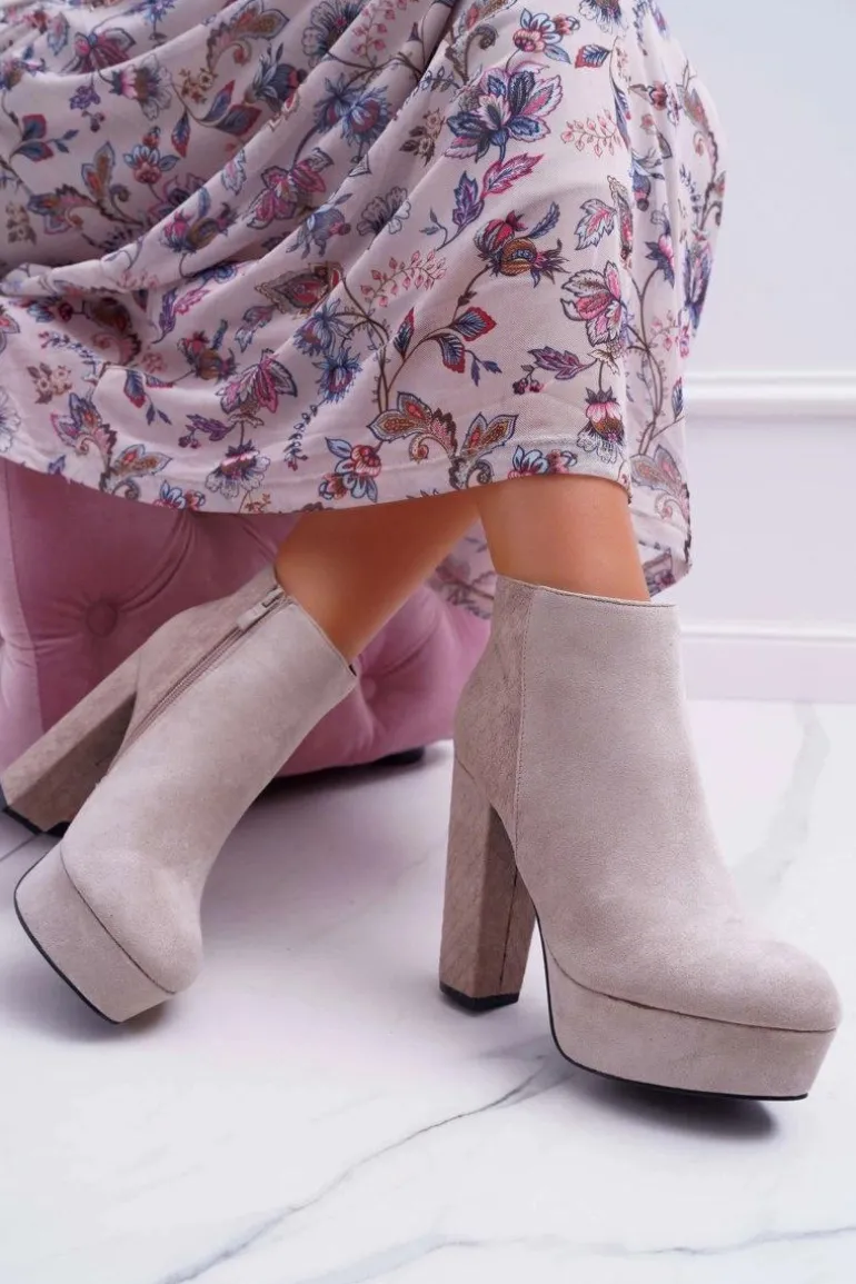 Botki Damskie na Słupku Platformie Zamszowe Beżowe Celinne