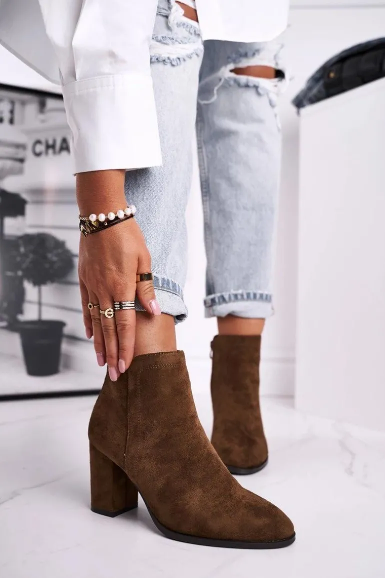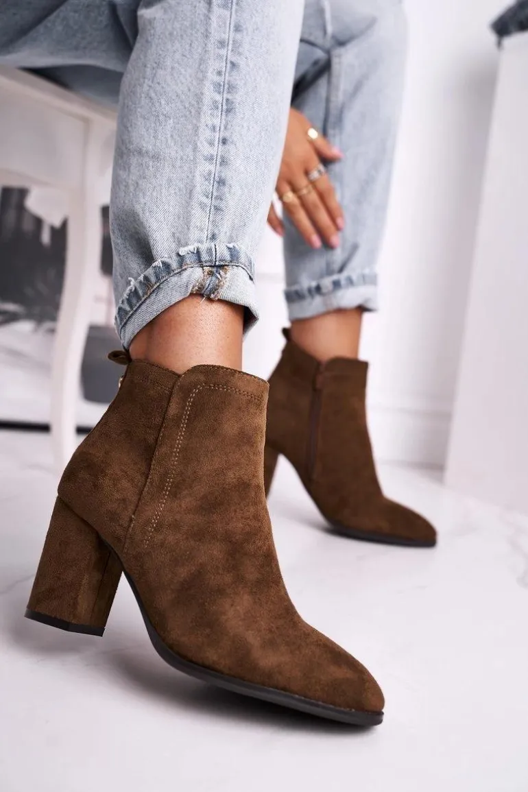 Botki Damskie Na Słupku Sergio Leone Oliwkowe BT508