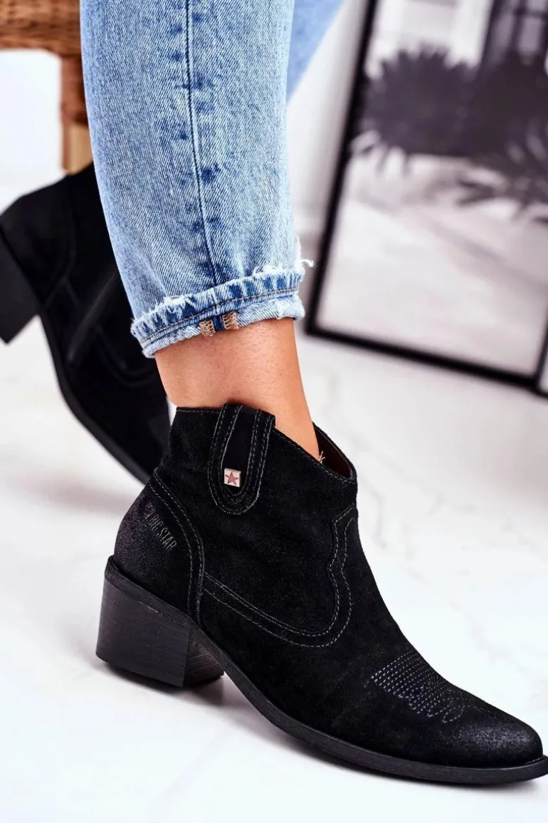 Botki Damskie Na Słupku Skórzane Big Star Czarne GG274329