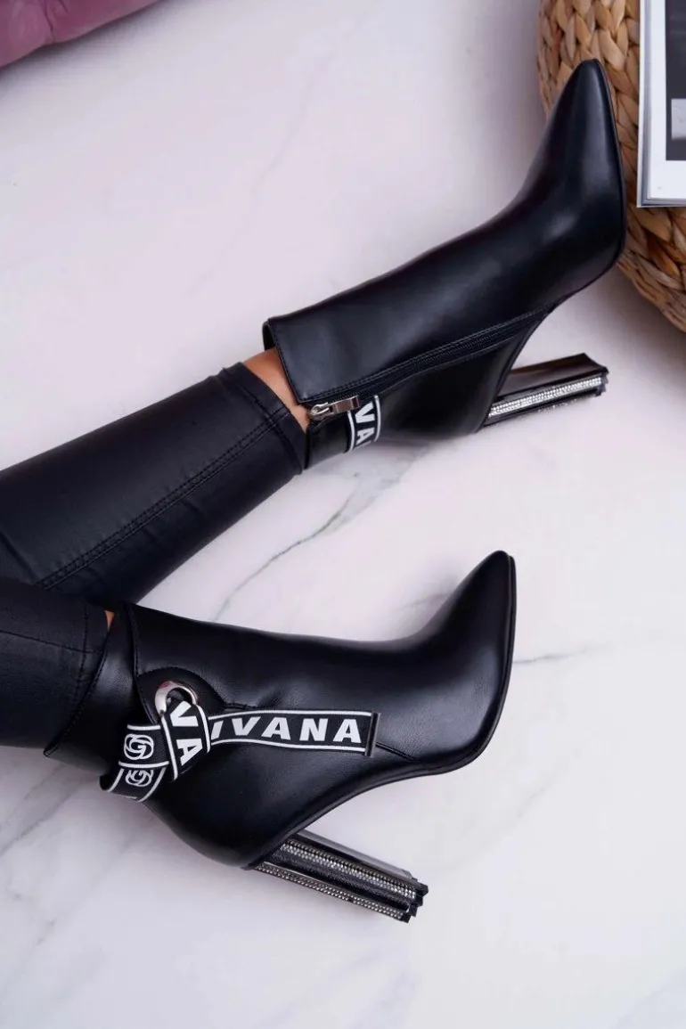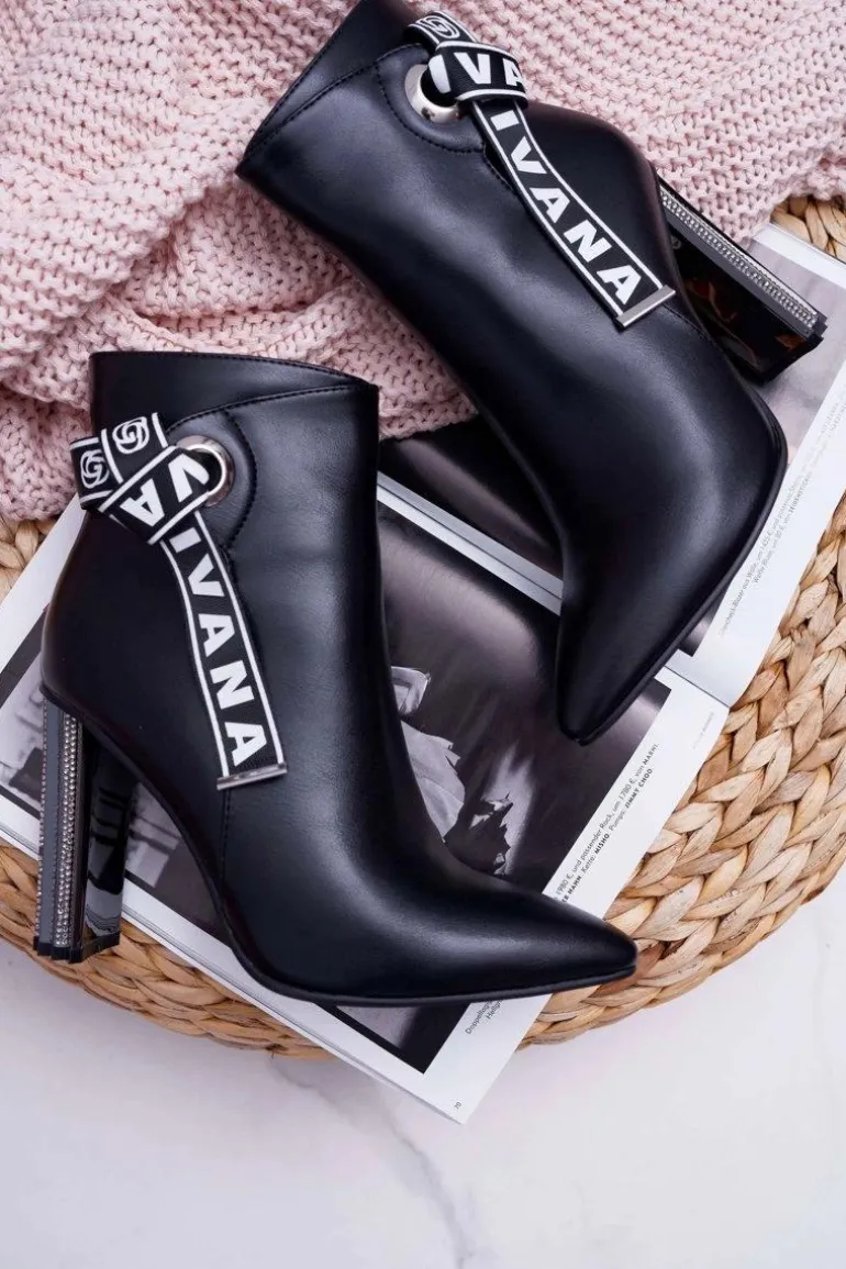 Botki Damskie Na Słupku W Szpic Czarne Macada