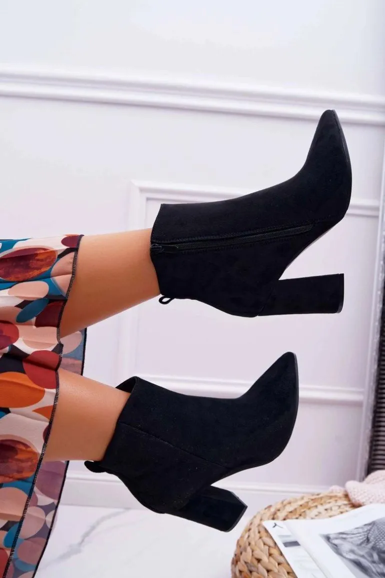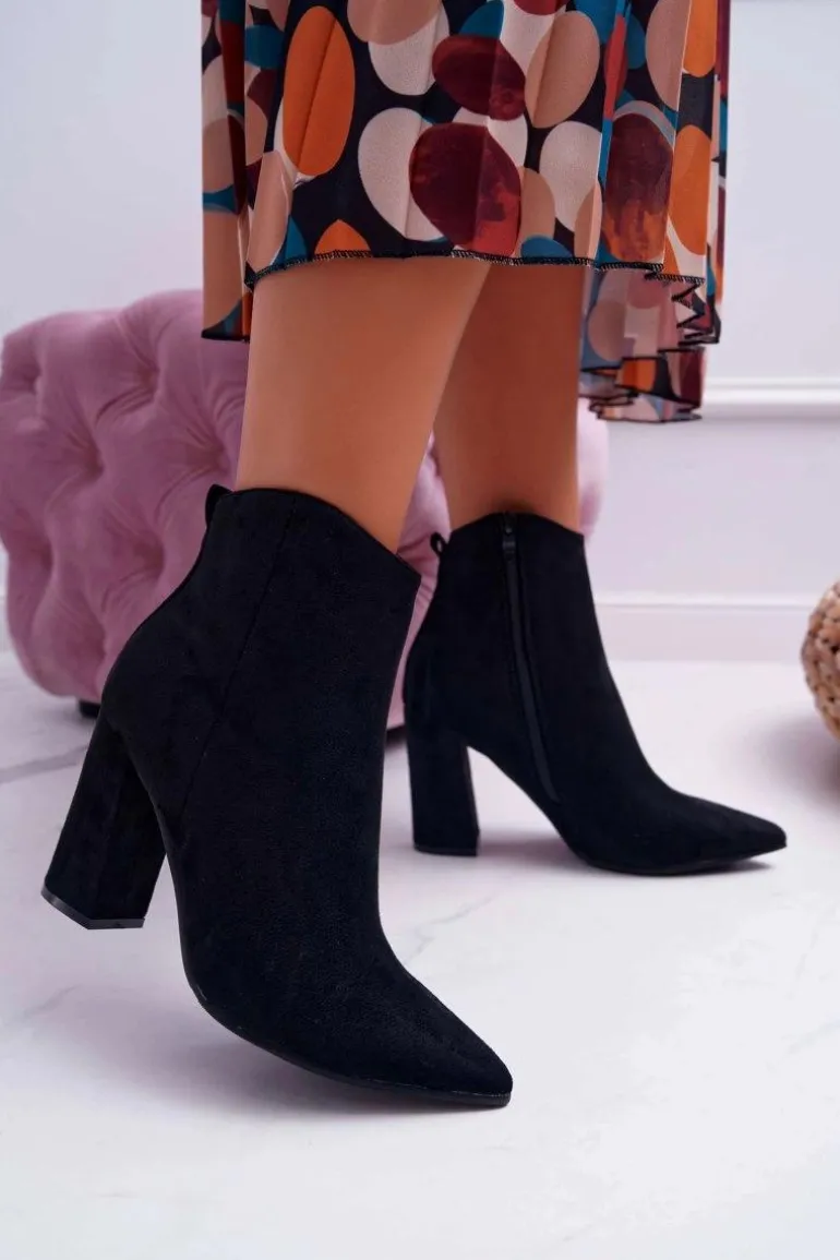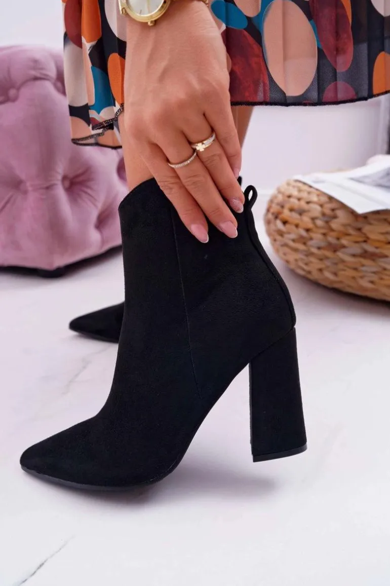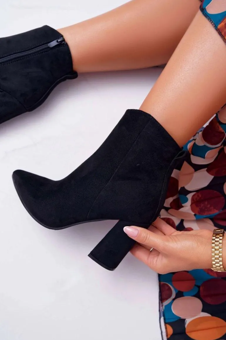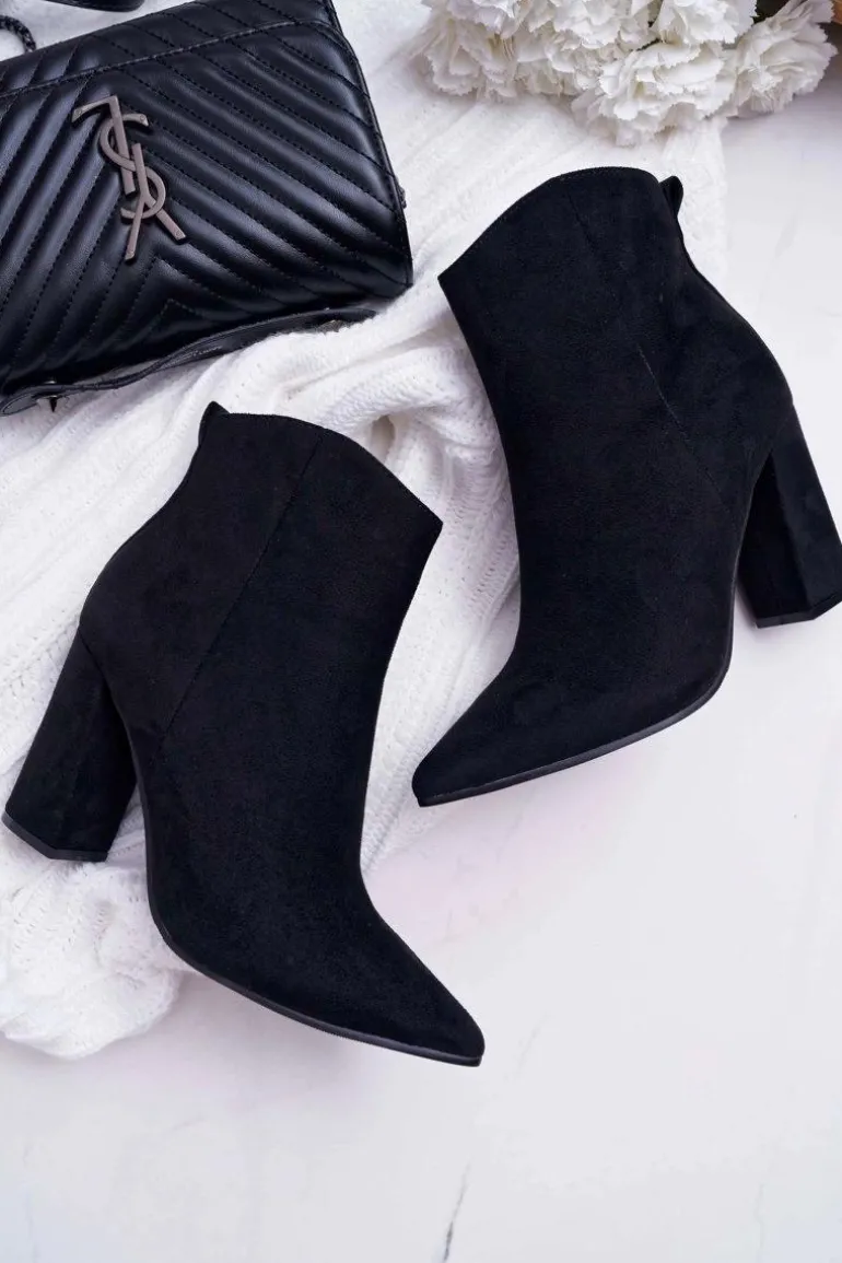 Botki Damskie Na Słupku W Szpic Zamszowe Czarne Summe