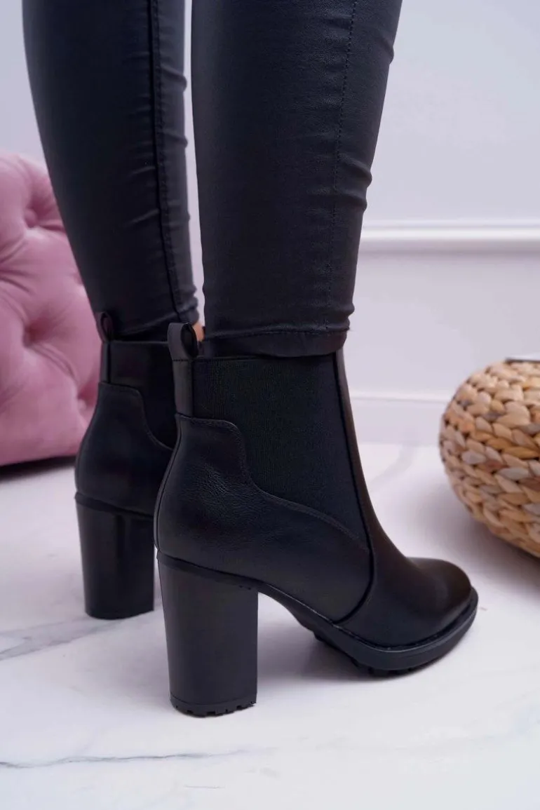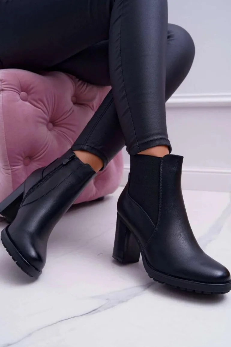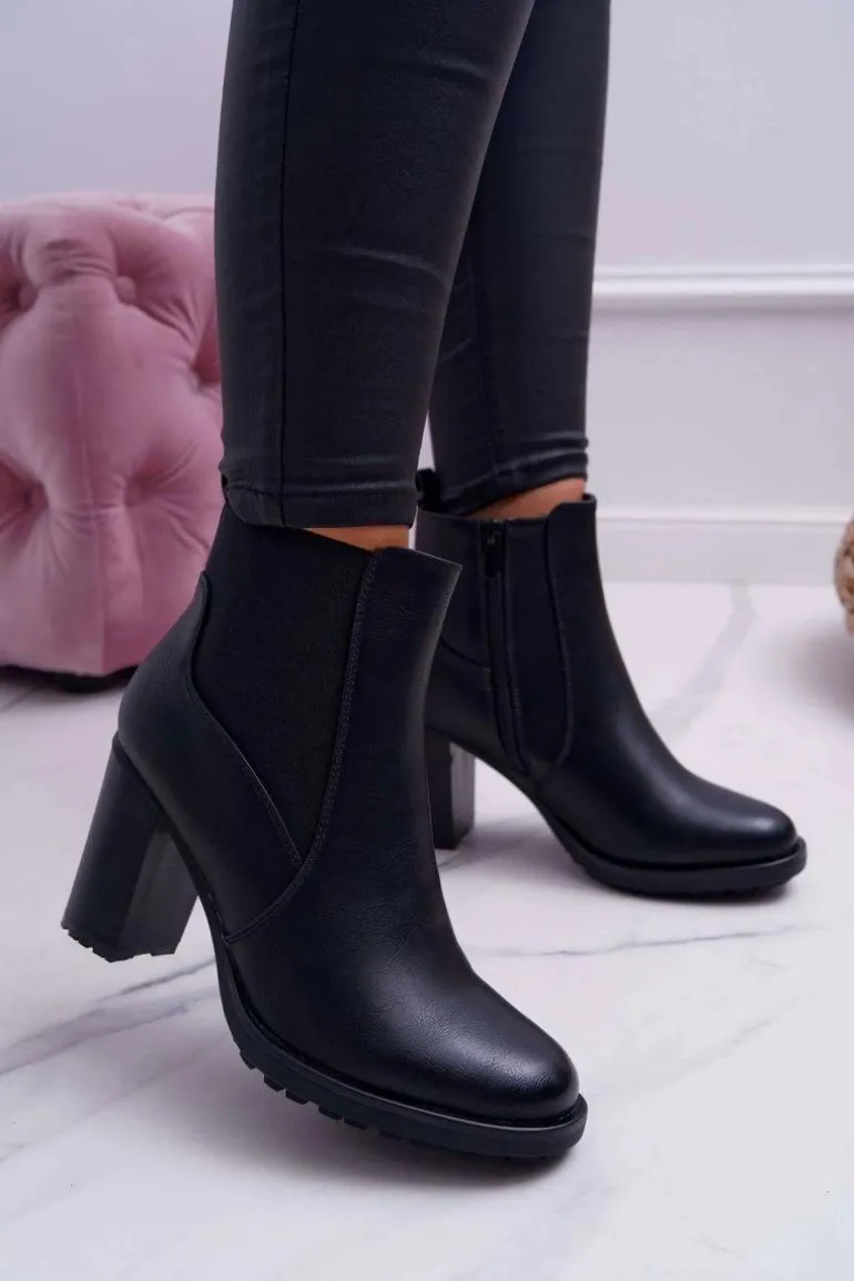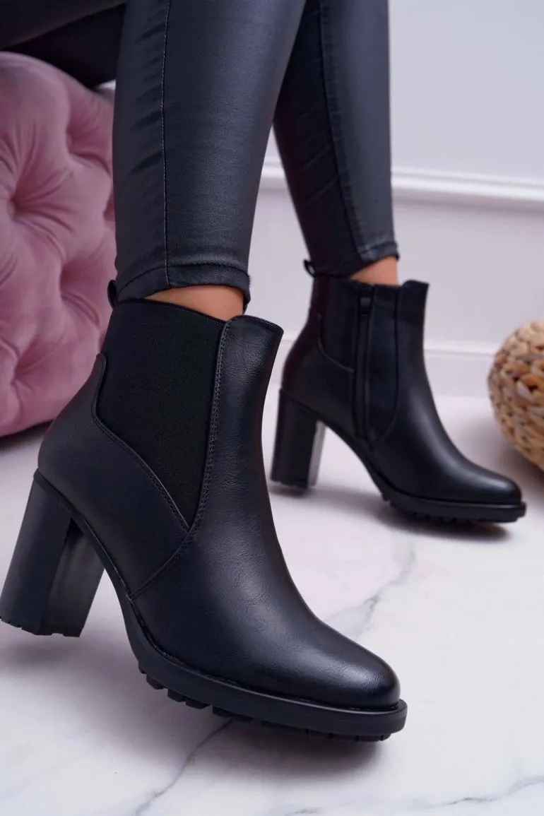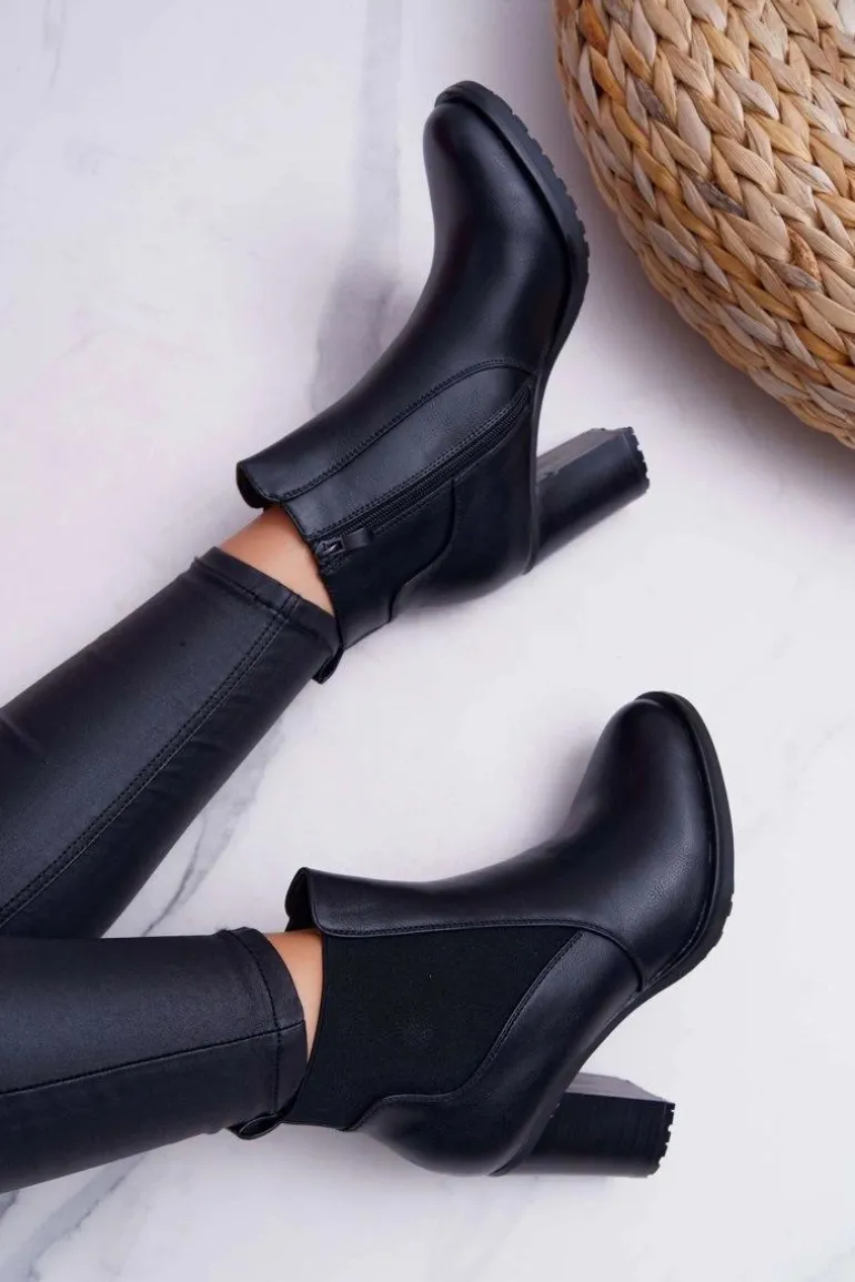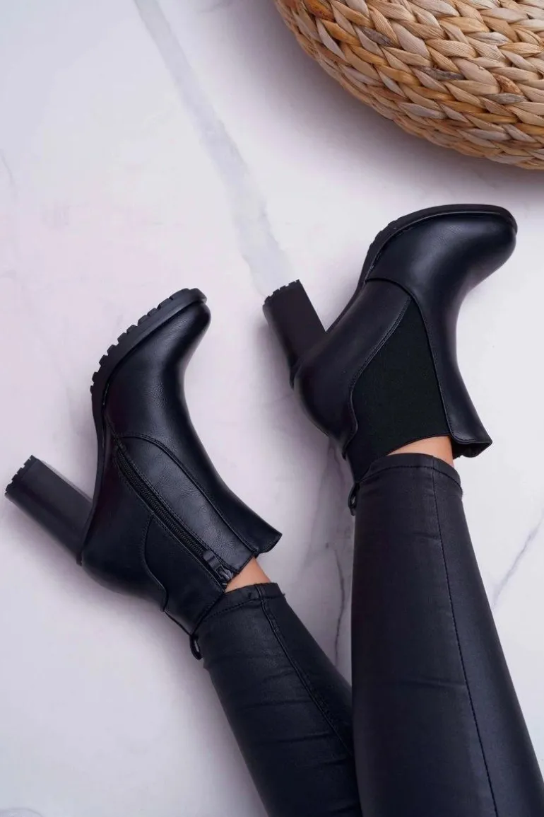 Botki Damskie Na Słupku z Zamkiem Czarne Beloved