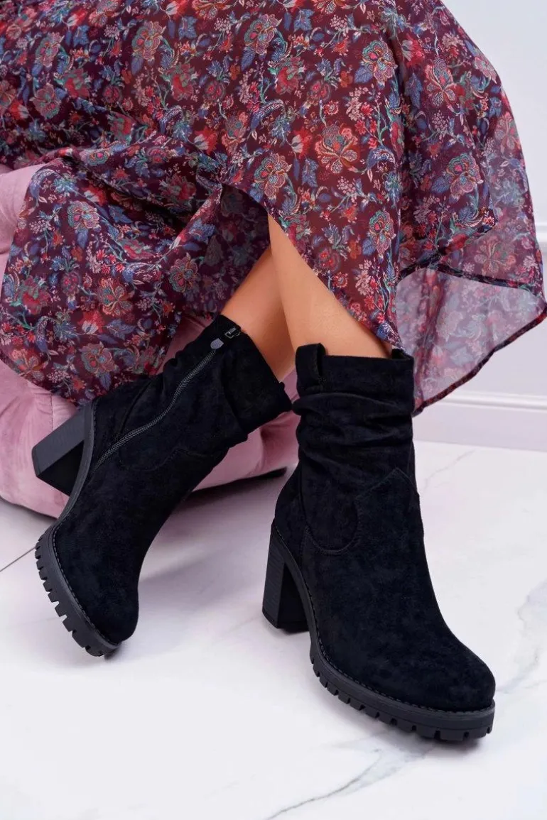 Botki Damskie Na Słupku Zamsz Czarne Celma