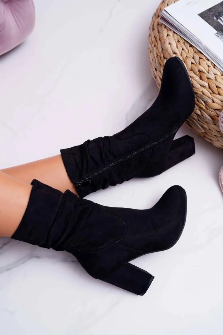 Botki Damskie Na Słupku Zamsz Czarne S.Barski 36-14