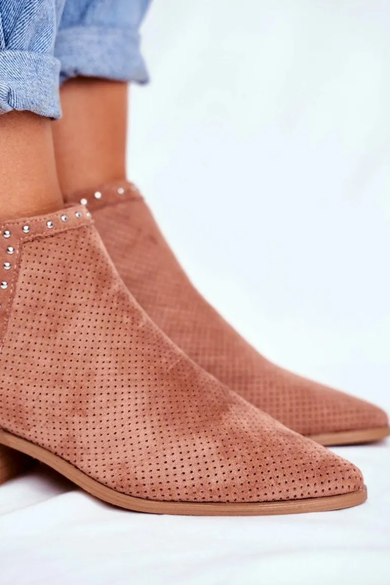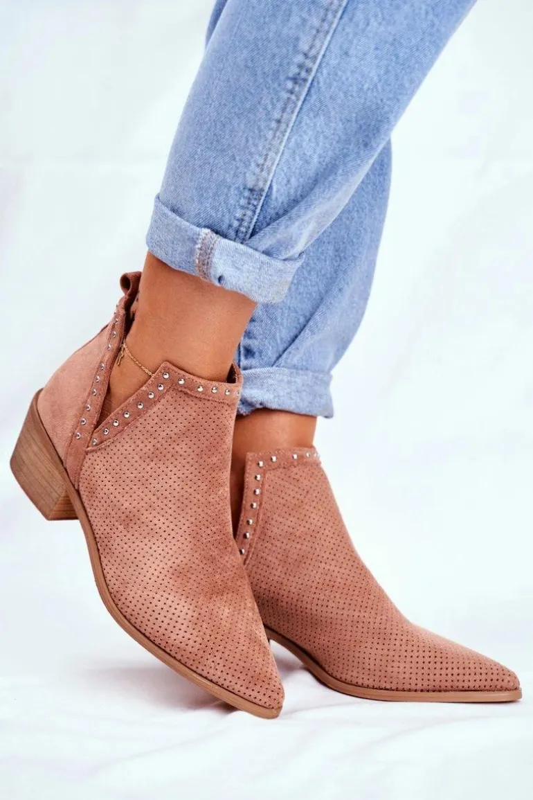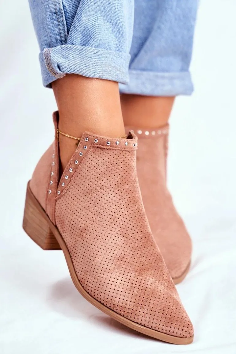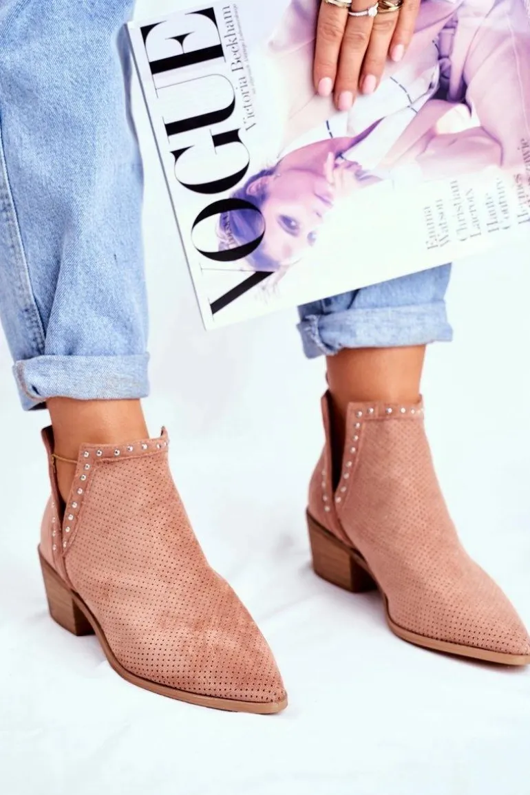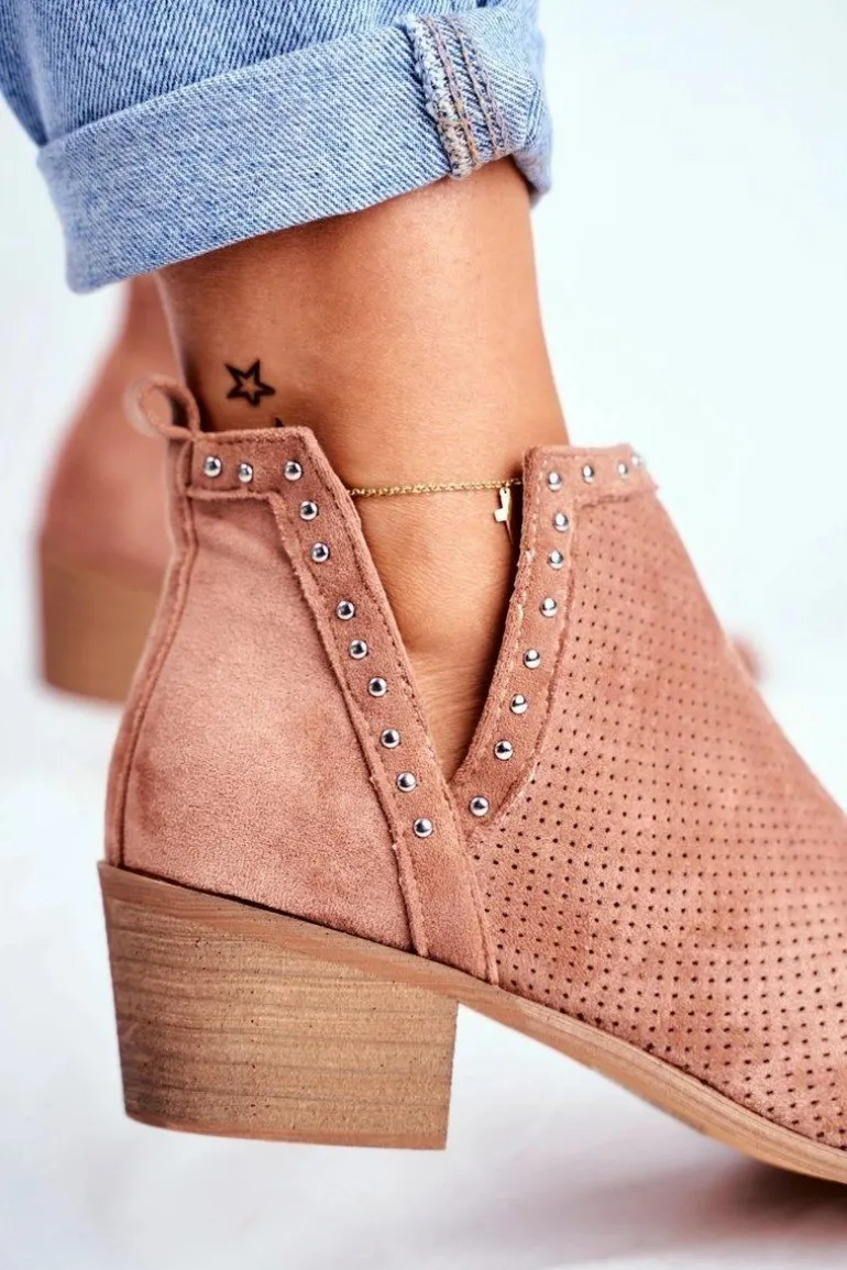 Botki Damskie Na Słupku Zamszowe Ażurowe Różowe Margate