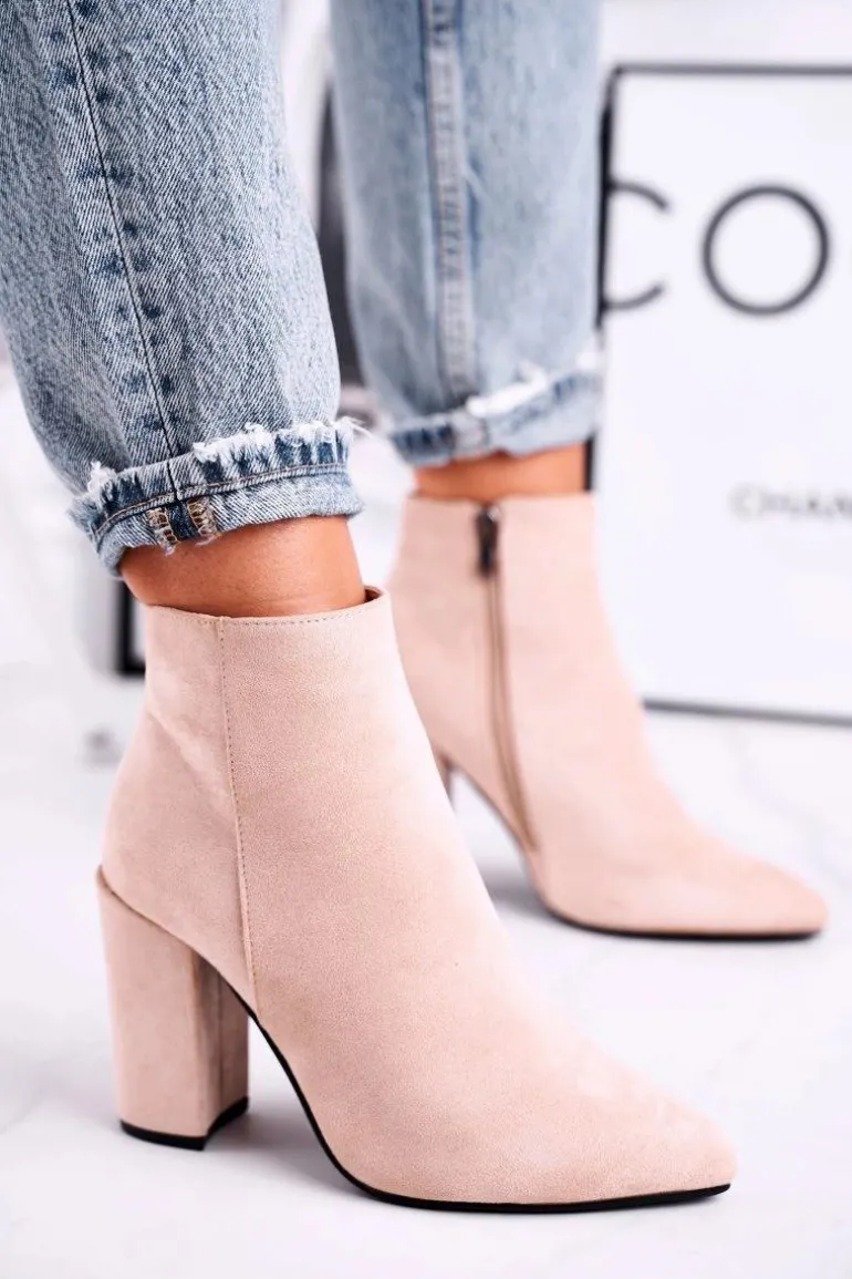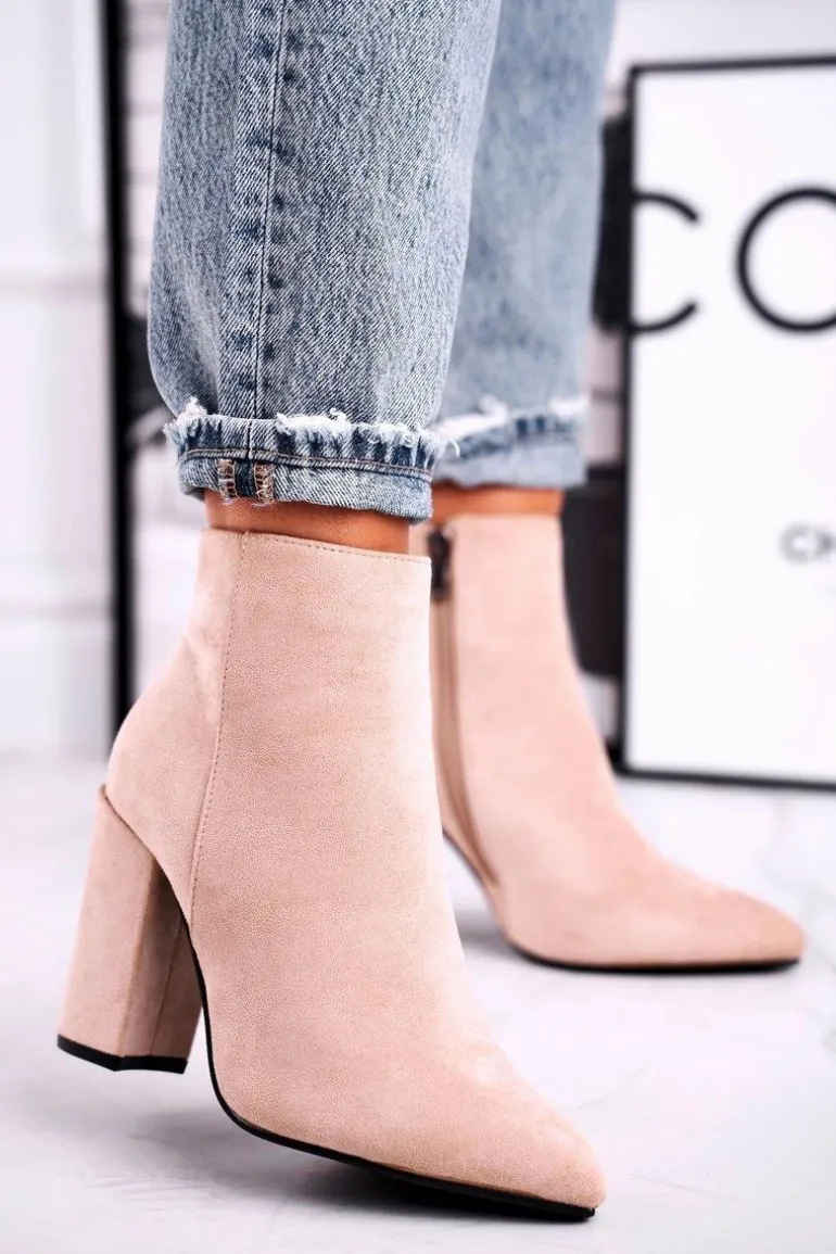 Botki Damskie na Słupku Zamszowe Beżowe Sharks