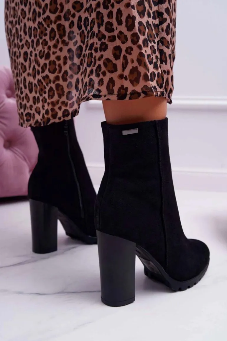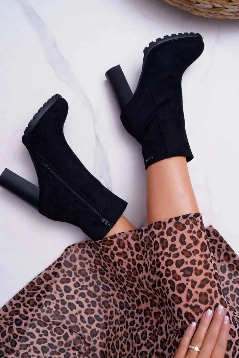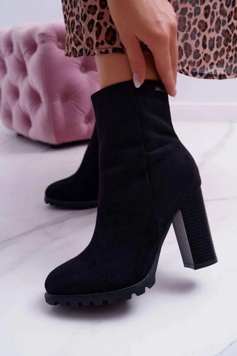 Botki Damskie na Słupku Zamszowe Czarne Cadillac