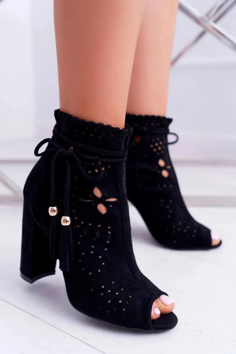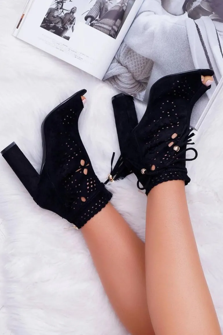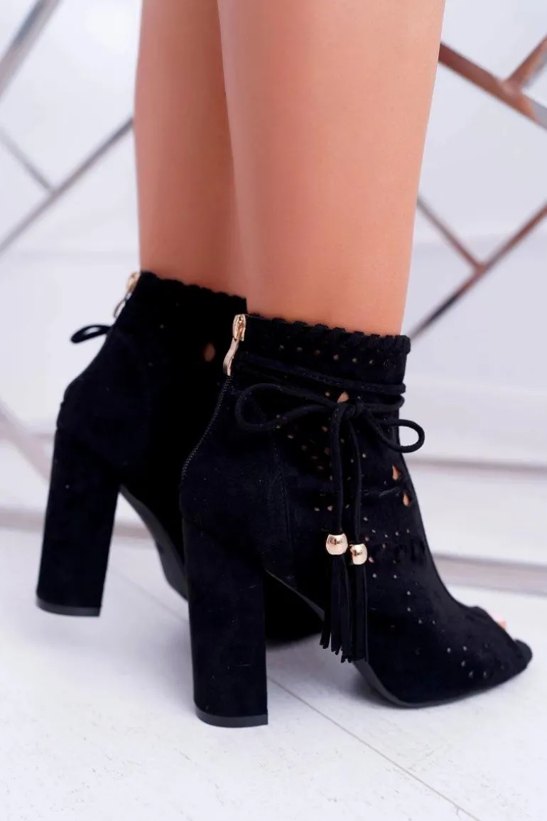 Botki Damskie Na Słupku Zamszowe Czarne Corinne