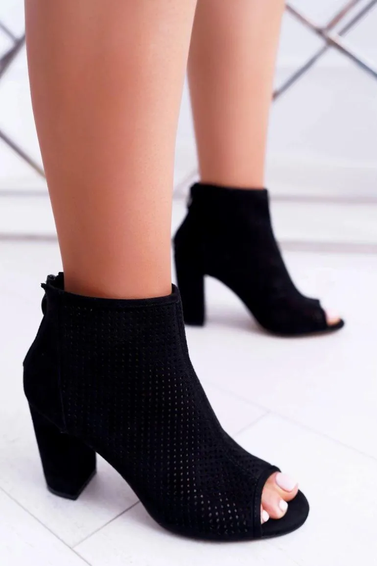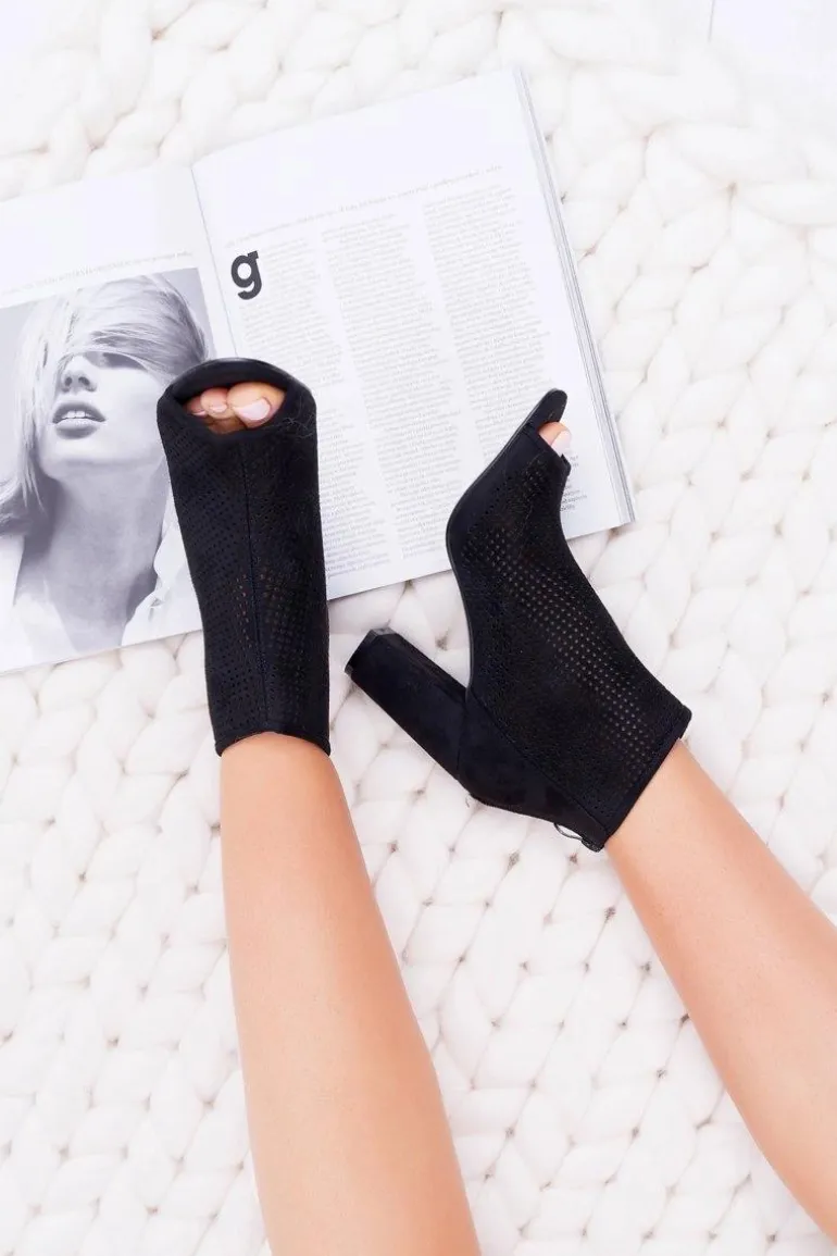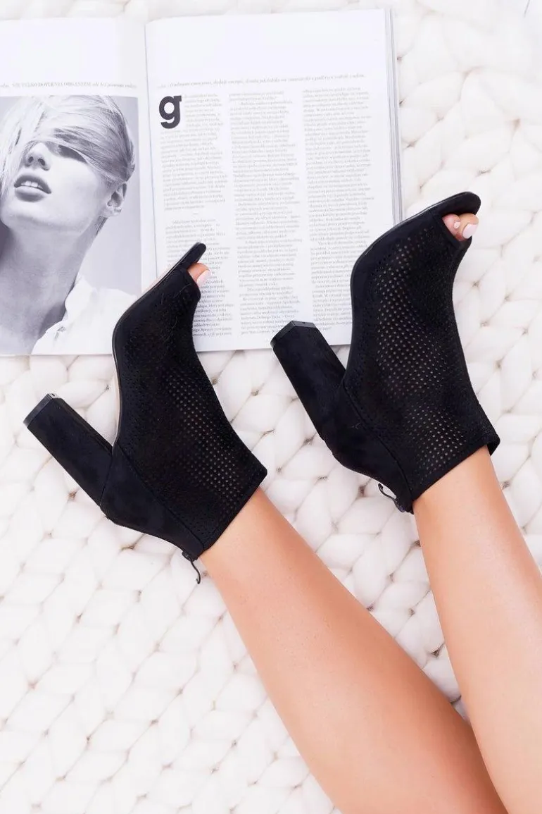 Botki Damskie Na Słupku Zamszowe Czarne Jessin
