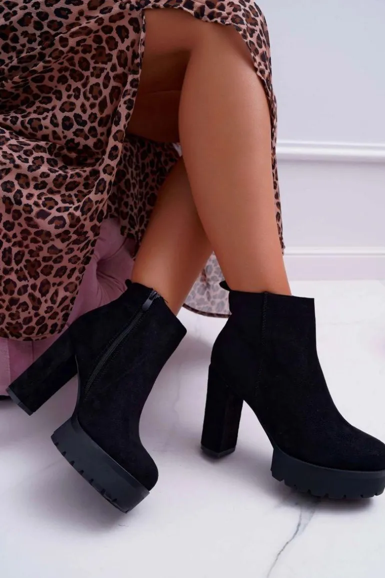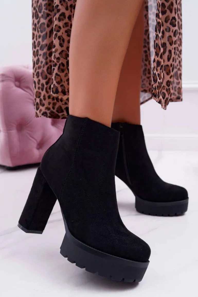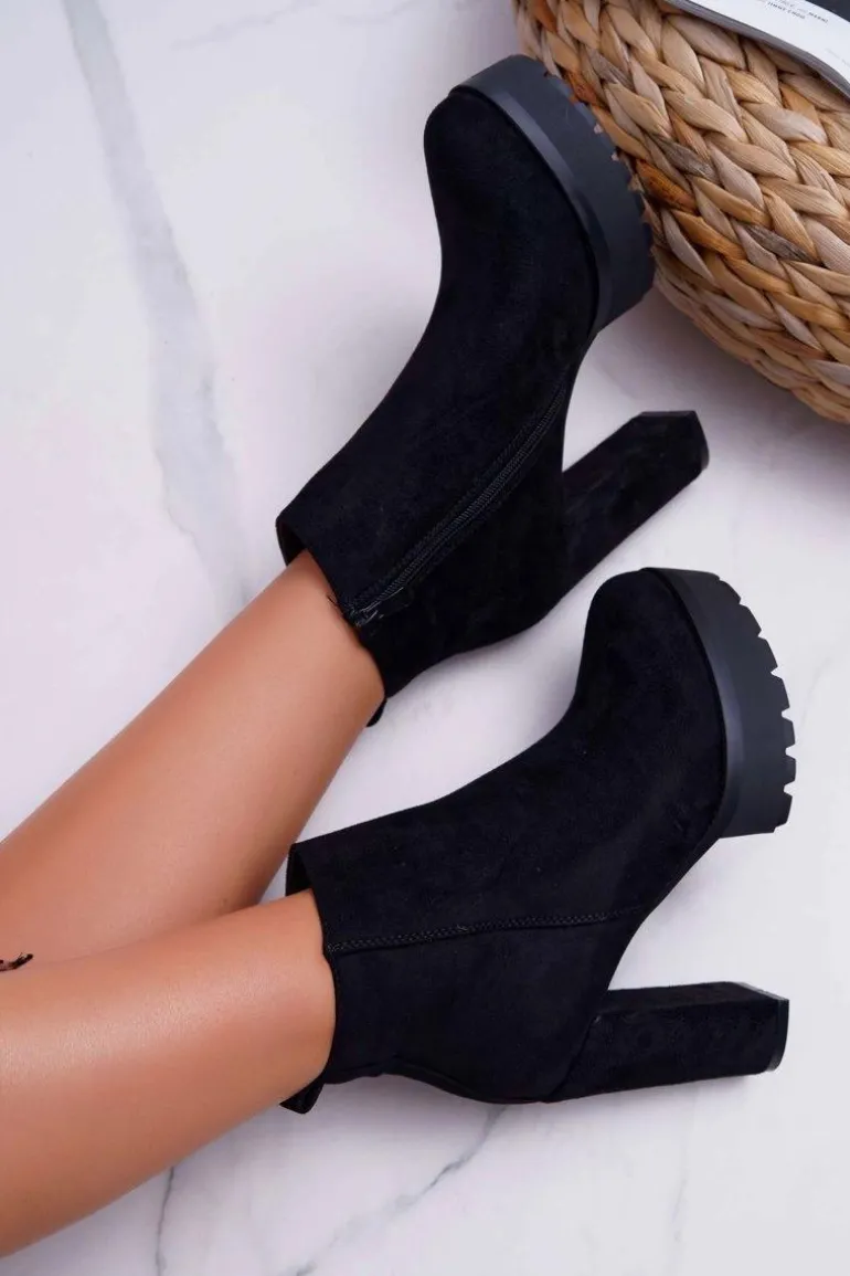 Botki Damskie na Słupku Zamszowe Czarne Jokano