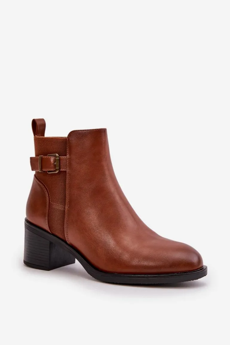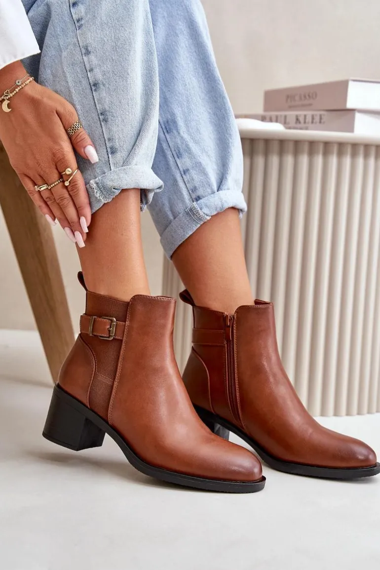 Botki damskie wykonane z eko skóry. Wnętrze ocieplone jest kocem obuwniczym, co zapewnia dodatkowe ciepło i komfort podczas chłodniejszych dni. Model zapinany na zamek, co ułatwia zakładanie i zdejmowanie, a także zapewnia doskonałe dopasowanie do stopy. Ozdobione detalem w postaci paseczka z klamrą. Idealne na jesienne i zimowe dni! Przy wyborze rozmiaru prosimy sugerować się tabelą rozmiarów.