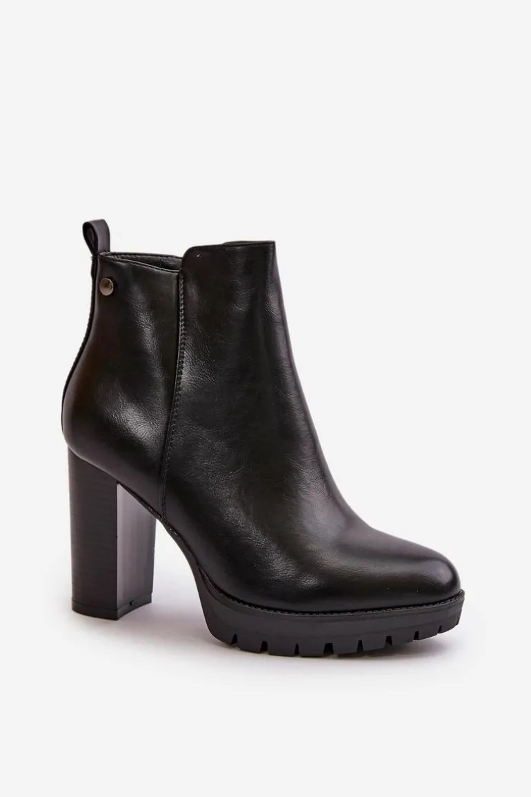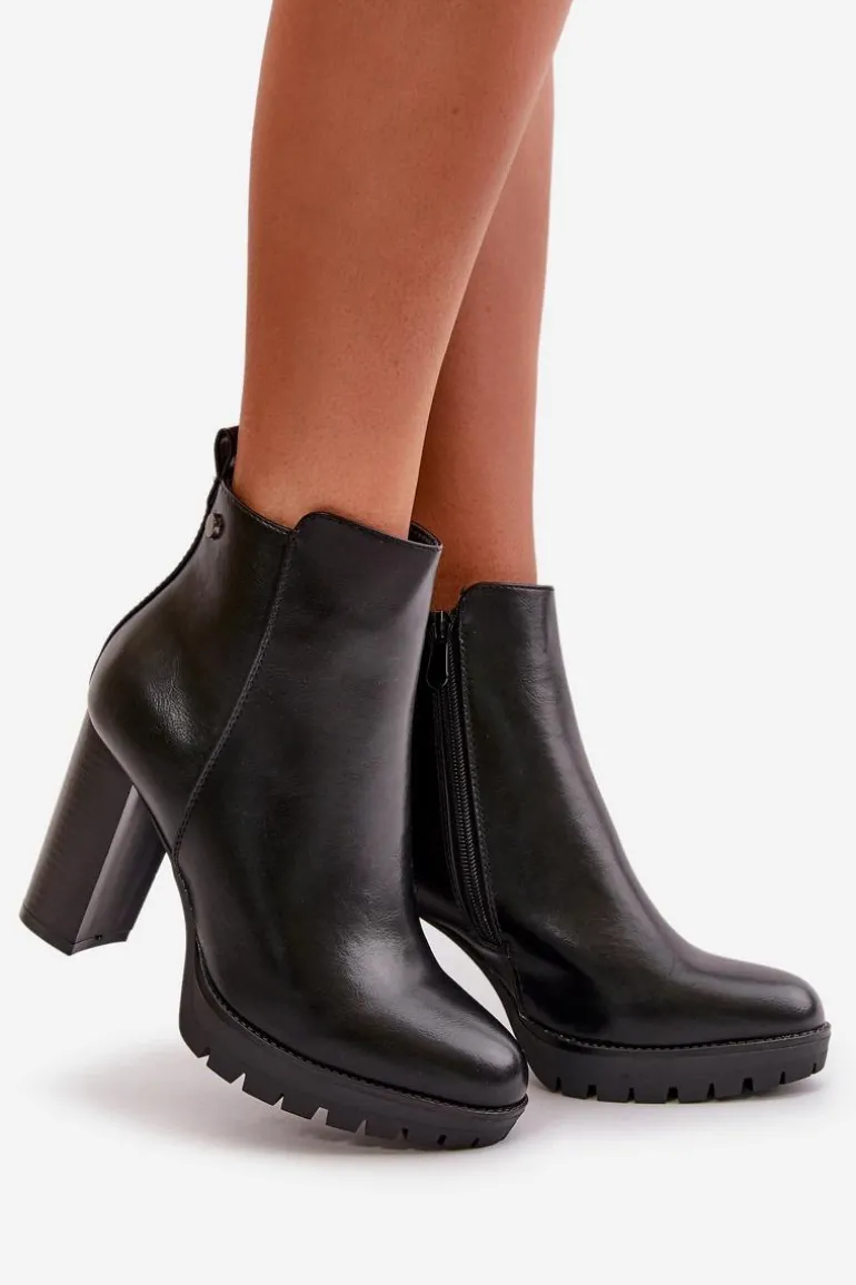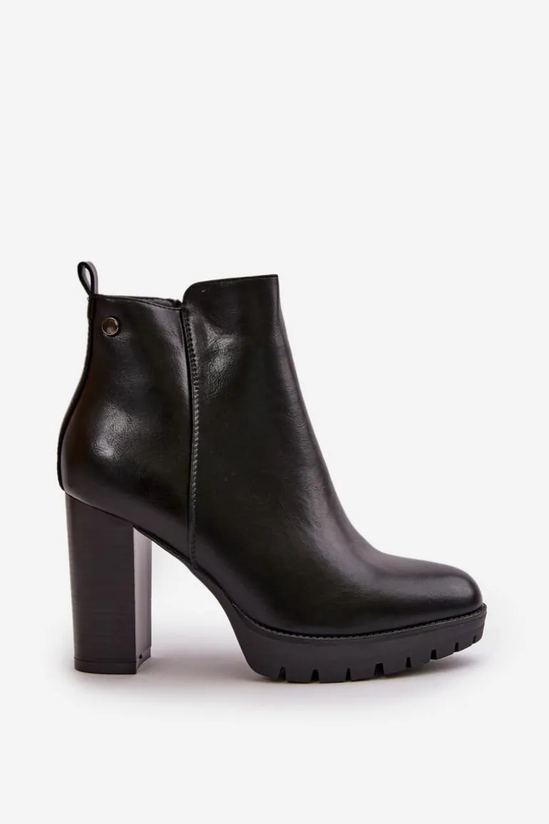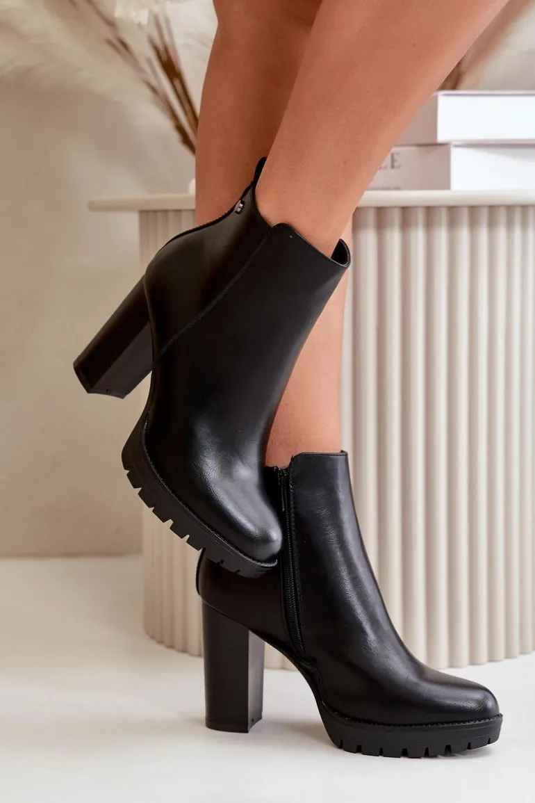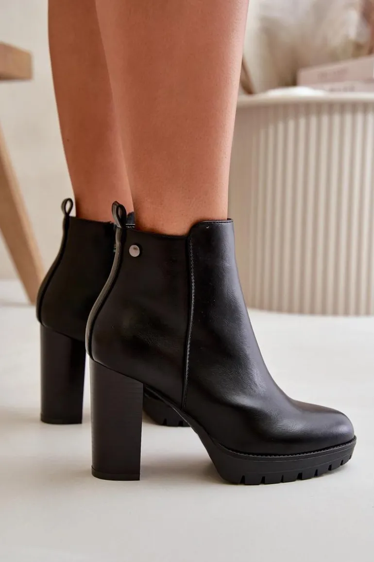 Botki Damskie Ocieplane Na Wysokim Słupku Zapinane Na Zamek Czarne Bioria