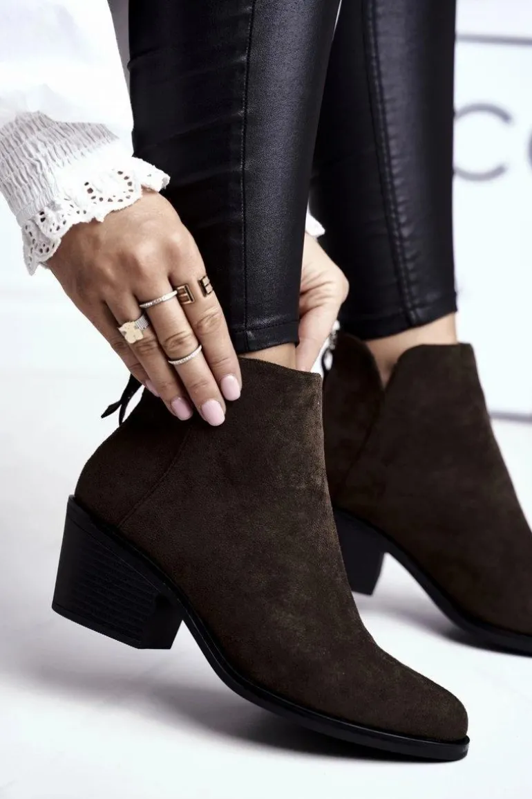 Kolekcja naszych botków cały czas się powiększa! Model z najnowszej kolekcji to idealne uzupełnienie jesiennych stylizacji! Ergonomiczny kształt podeszwy dzięki delikatnemu obcasowi zapewni komfort w każdej sytuacji. Wierzch wykonany z wysokiej jakości skóry ekologicznej imitującej zamsz. Wspaniale uzupełnią Twoje stylizacje, zarówno w połączeniu z jeansami jak i sukienkami. Sprawdź całą ofertę botków i ciesz się nową parą butów. Przy wyborze rozmiaru prosimy sugerować się tabelą rozmiarów.