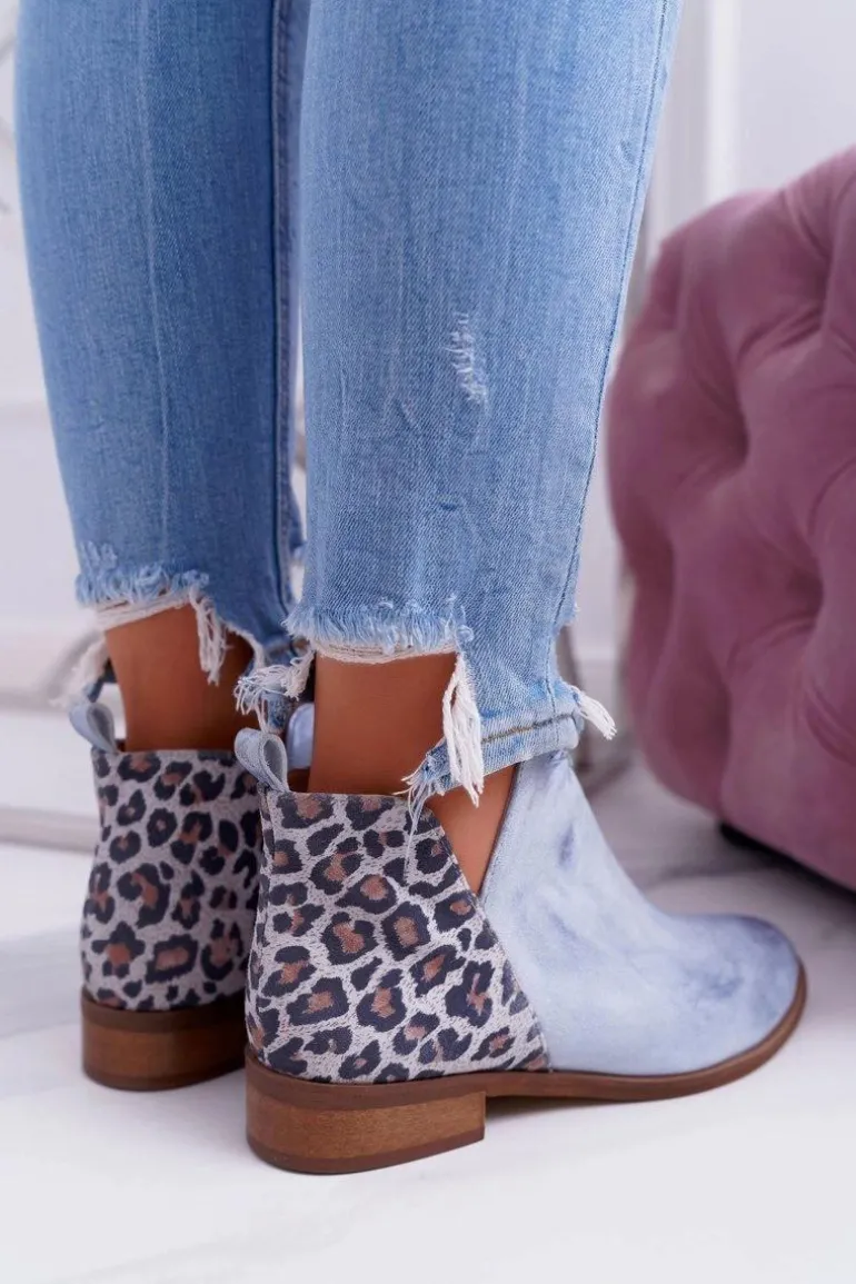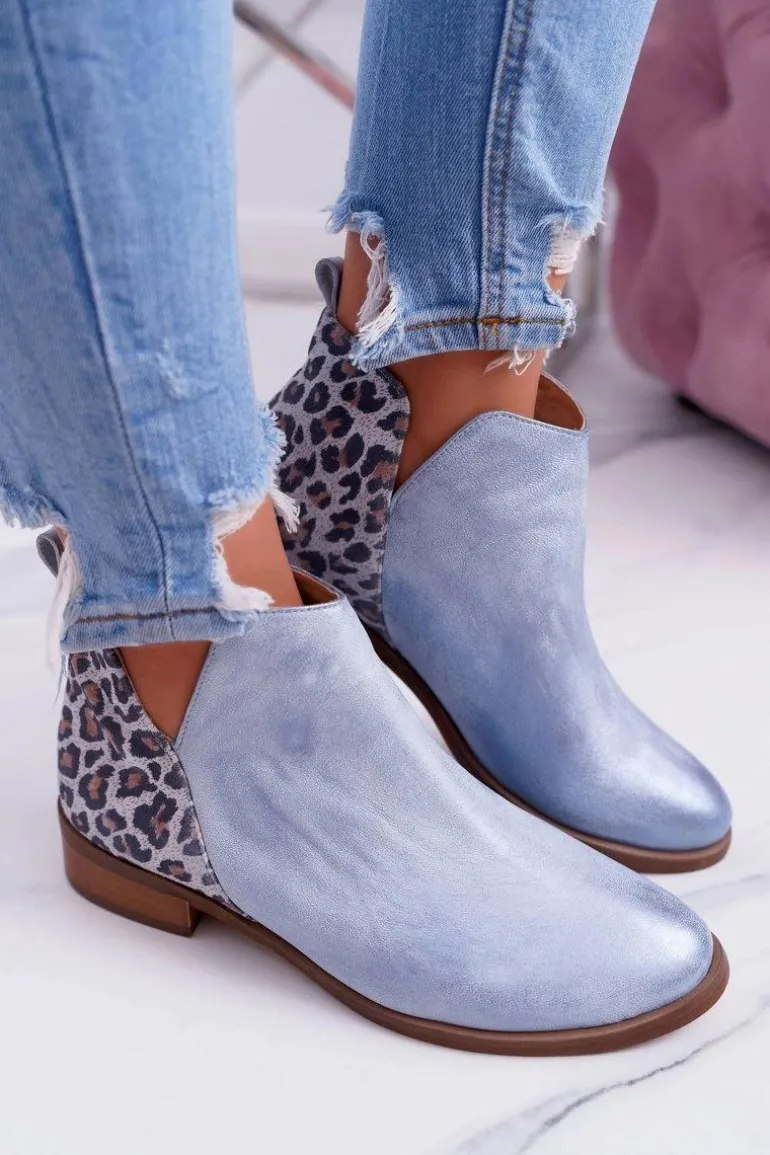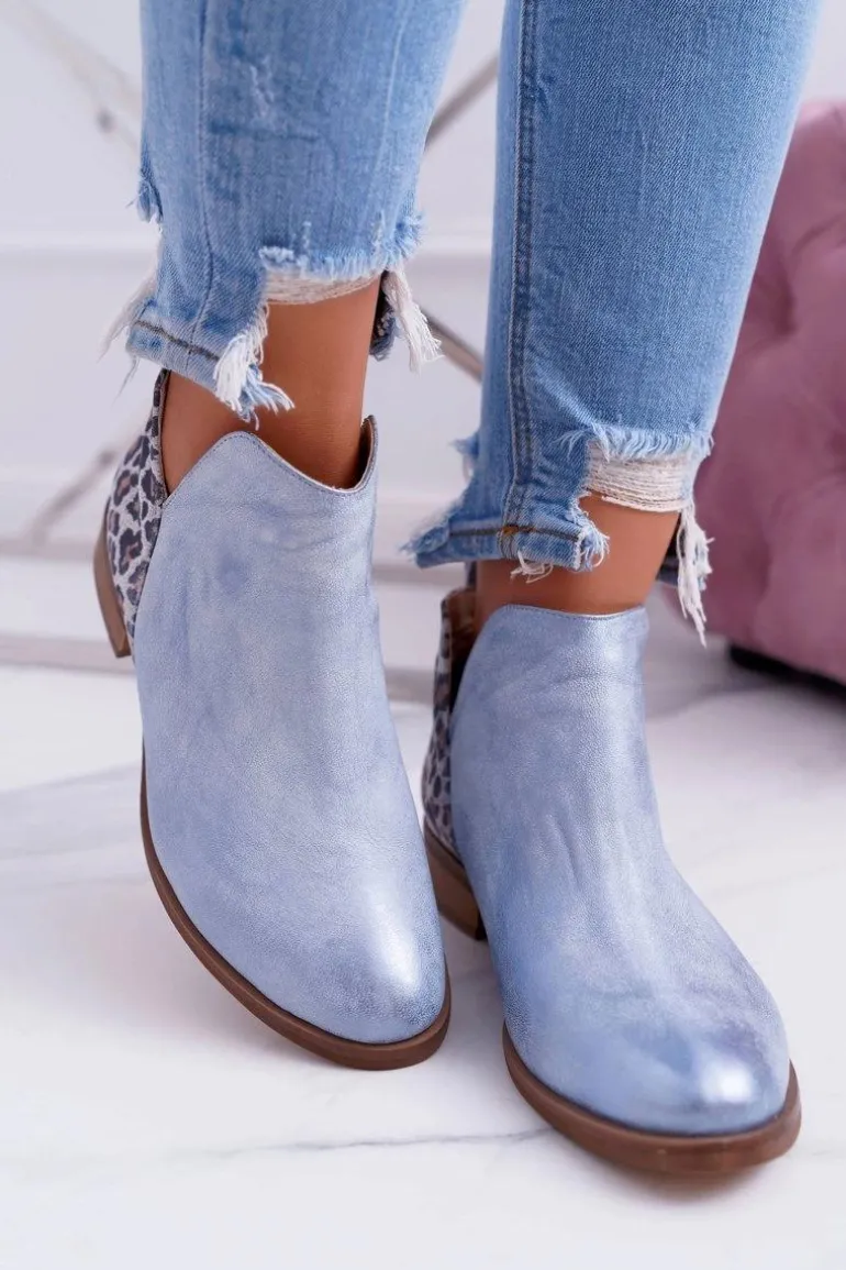 Botki Damskie Płaski Obcas Wiosenne Skórzane Niebieskie Madness