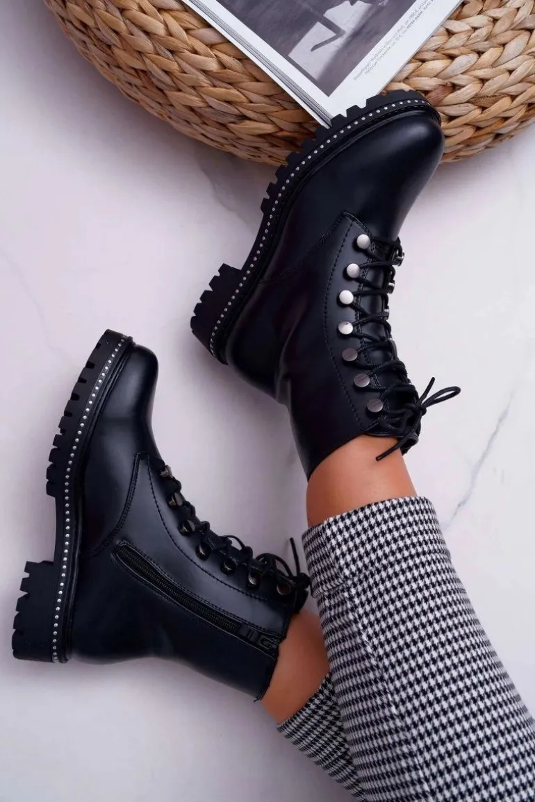 Mamy dla Was coś wyjątkowego! Wysokie sznurowane botki z suwakiem na boku. Świetnie wpasują się w nadchodzące trendy mody. Wykonane z wysokiej jakości skóry ekologicznej. Solidne sznurowanie zapewniające nam dopasowanie oraz mocna antypoślizgowa podeszwa. Wnętrze pokryte delikatnym kocem obuwniczym. Przy wyborze rozmiaru prosimy sugerować się tabelą rozmiarów, która dostępna jest po najechaniu bądź kliknięciu w dany rozmiar.