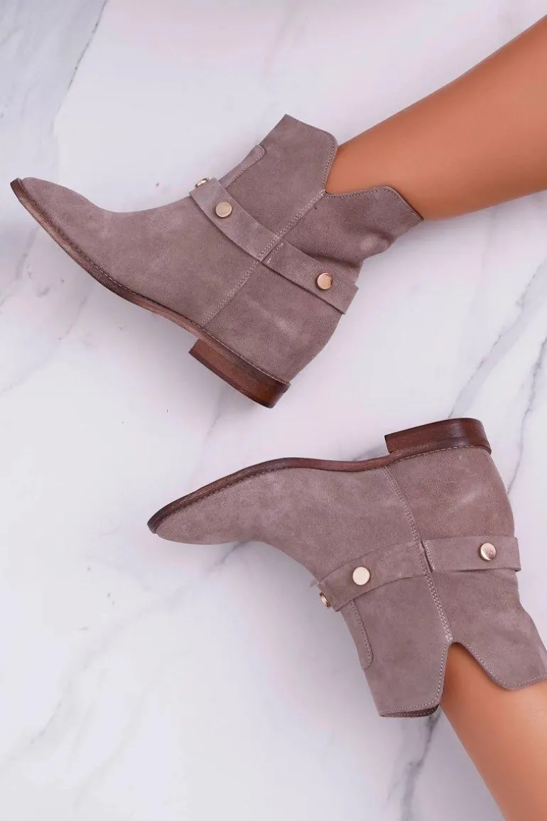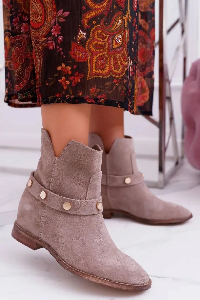 Botki Damskie Płaskie Laura Messi 1890 Skóra Zamsz Beżowe Darmah