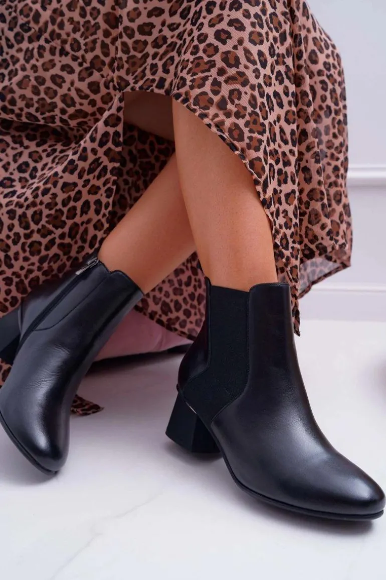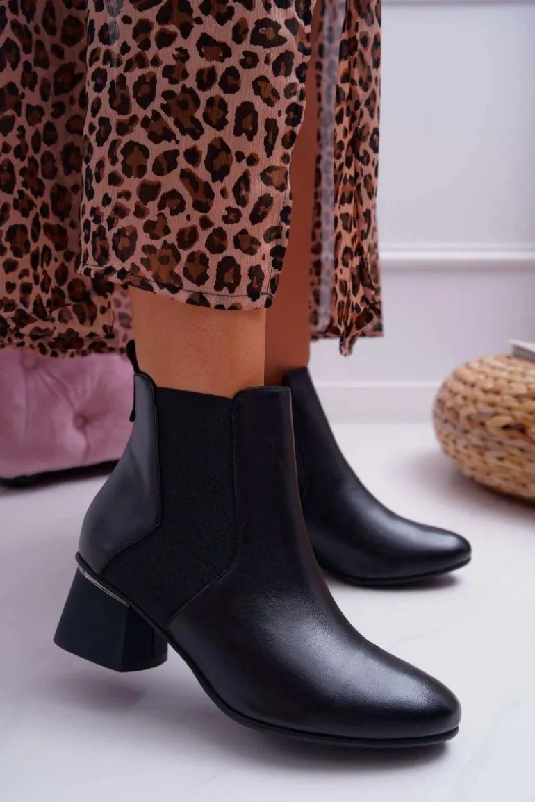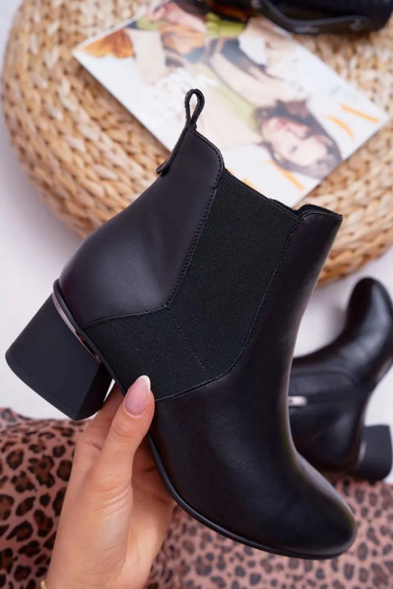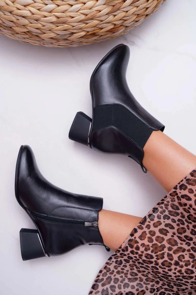 Botki Damskie Skórzane Laura Messi Czarne 2034