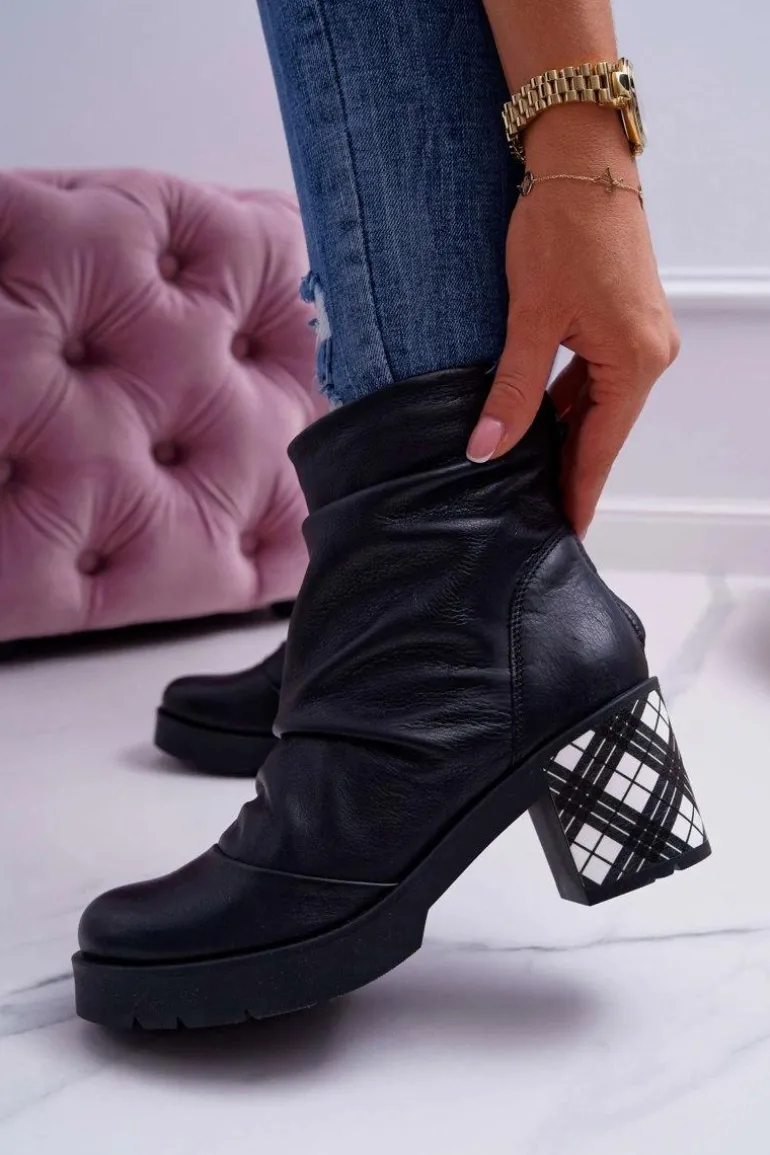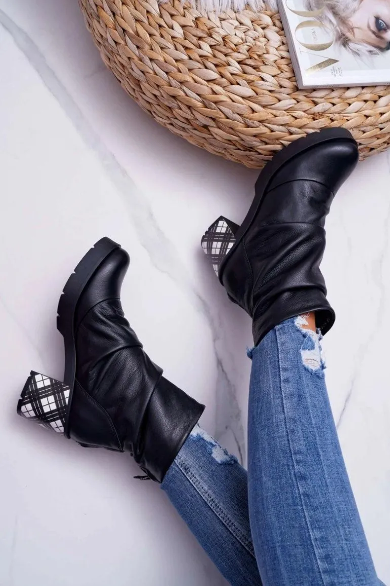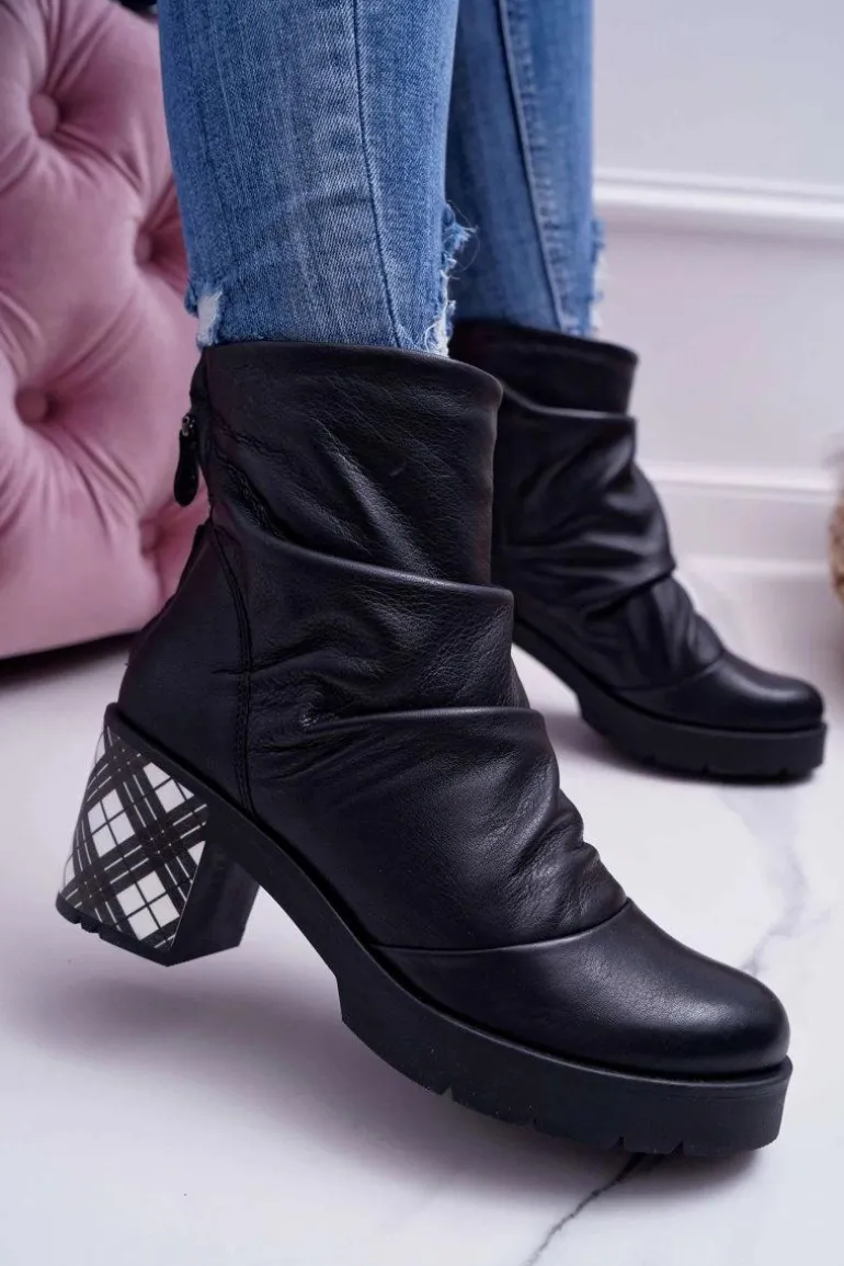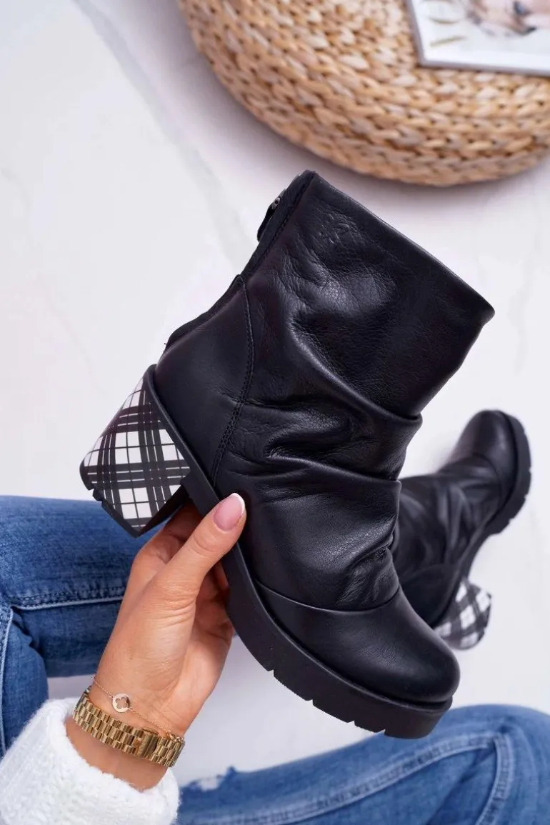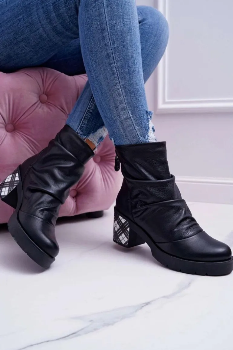 Botki Damskie Skórzane Maciejka Czarne 04216-01