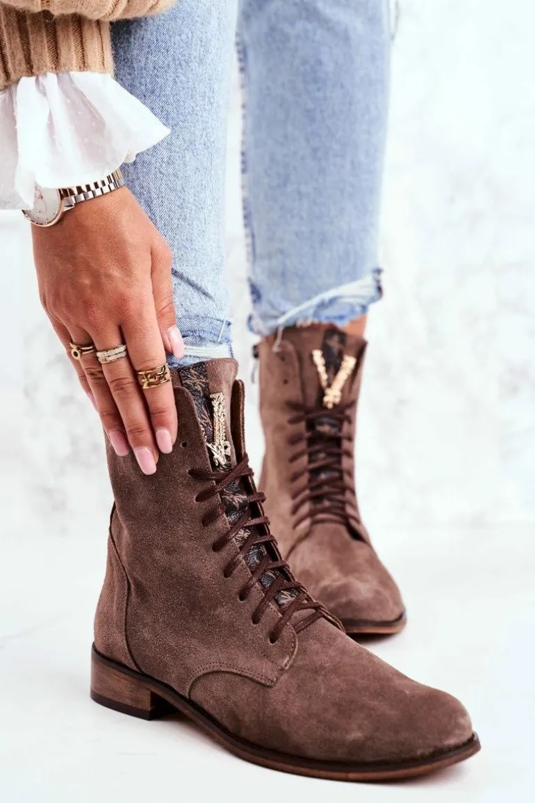 Botki Damskie Skórzane Nubuk Cappuccino Nicole 2593