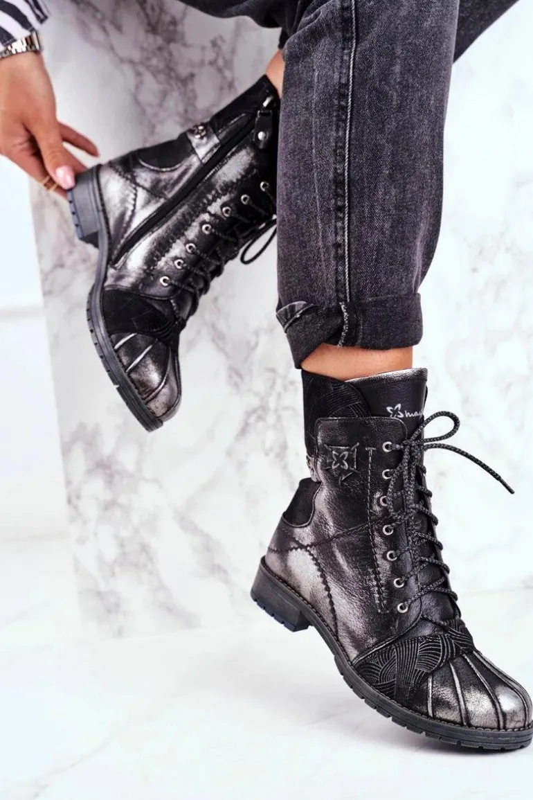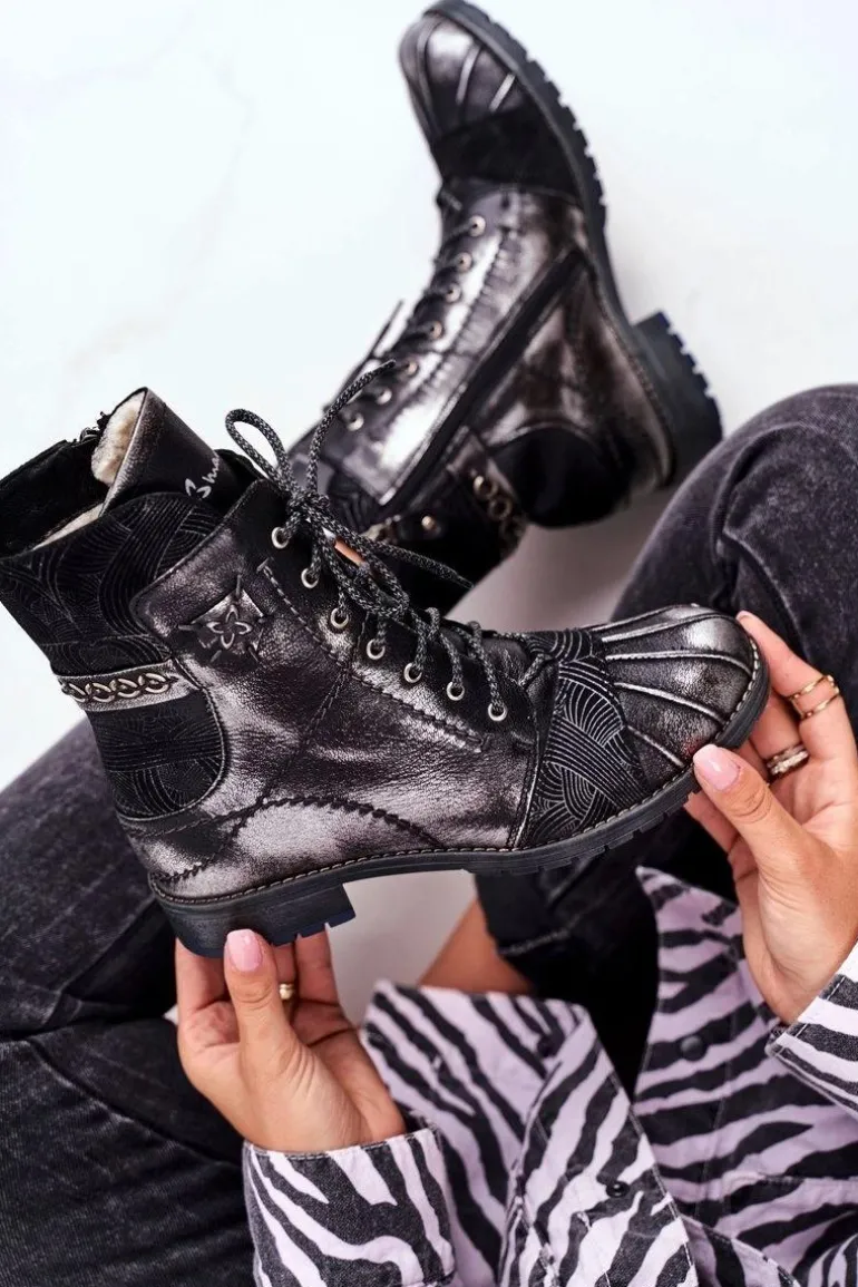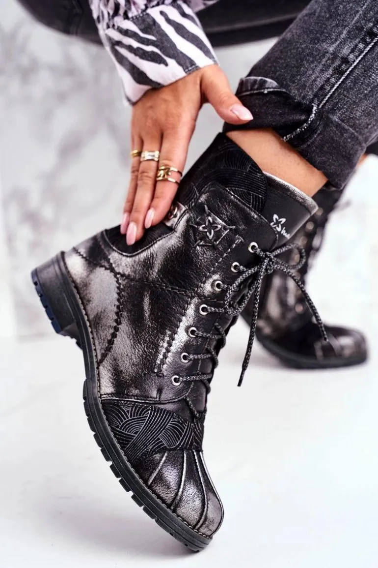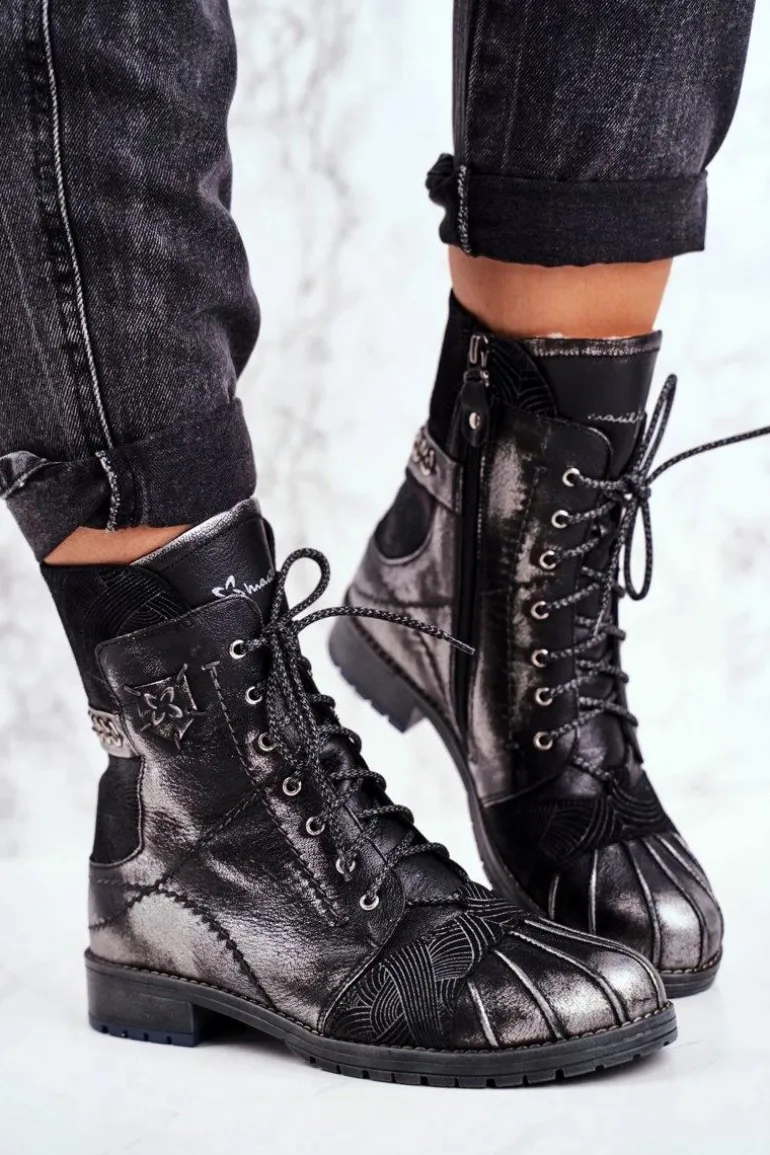 Botki Damskie Skórzane Ocieplane Maciejka Czarne 03961-01