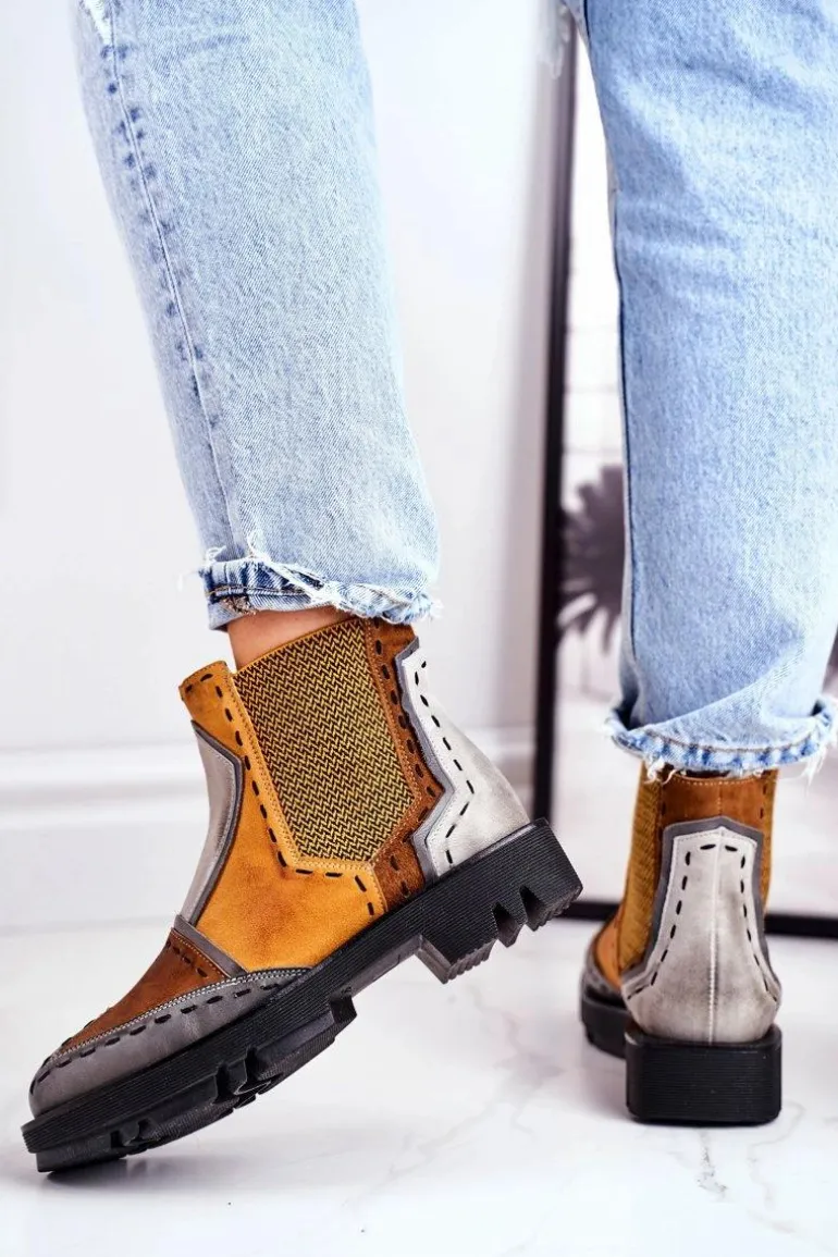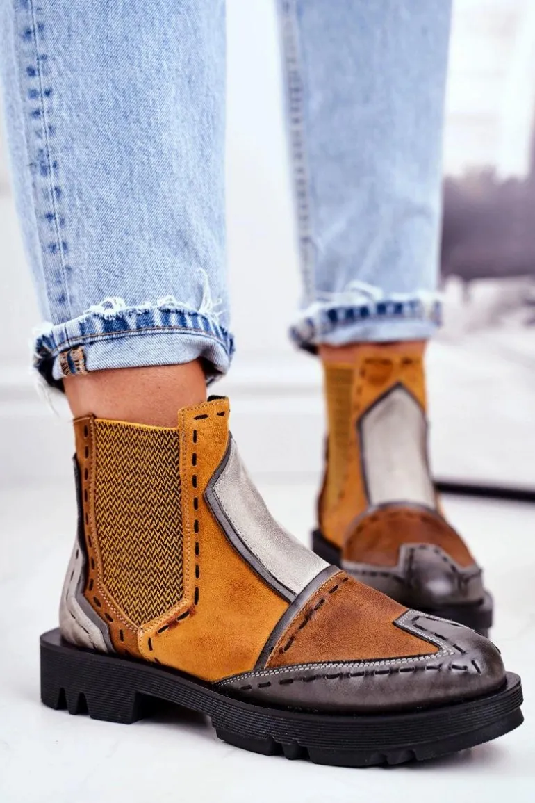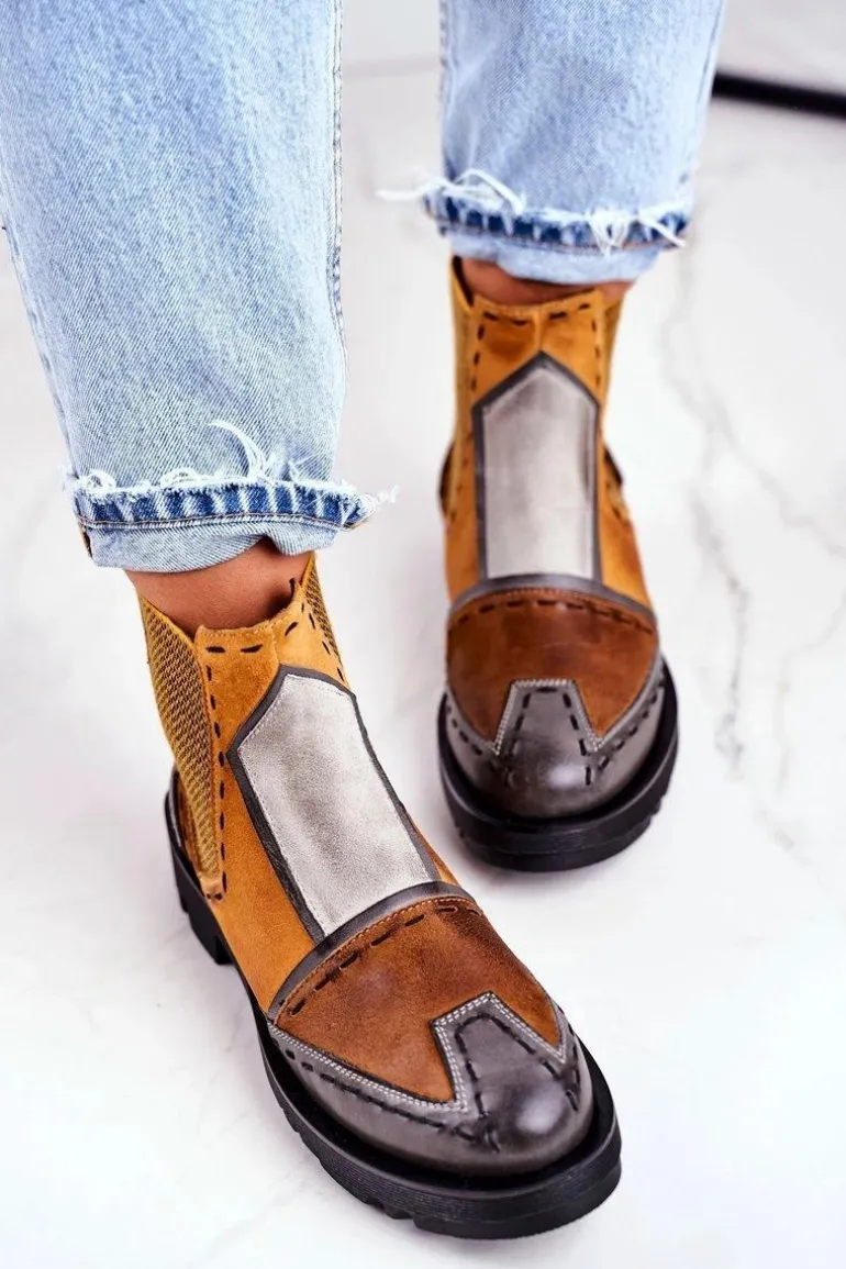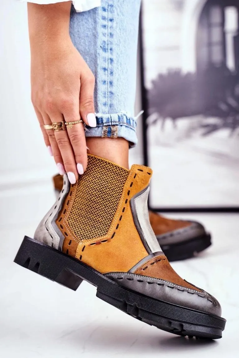 Botki Damskie Skórzane Sztyblety Maciejka Żółte 04634