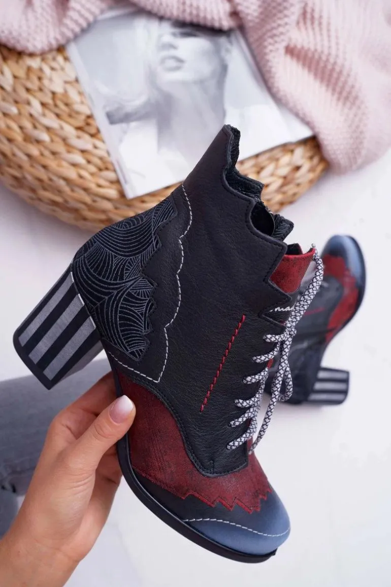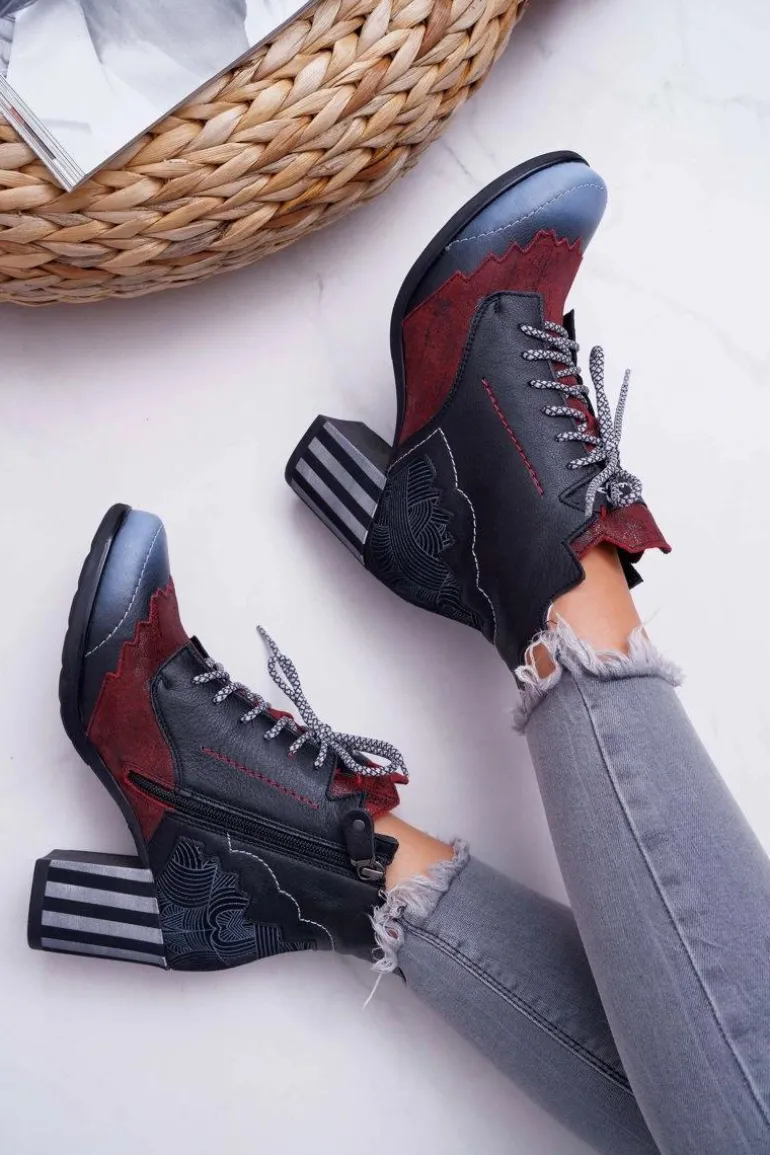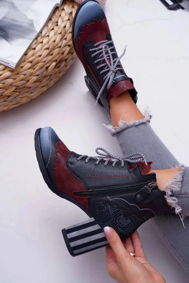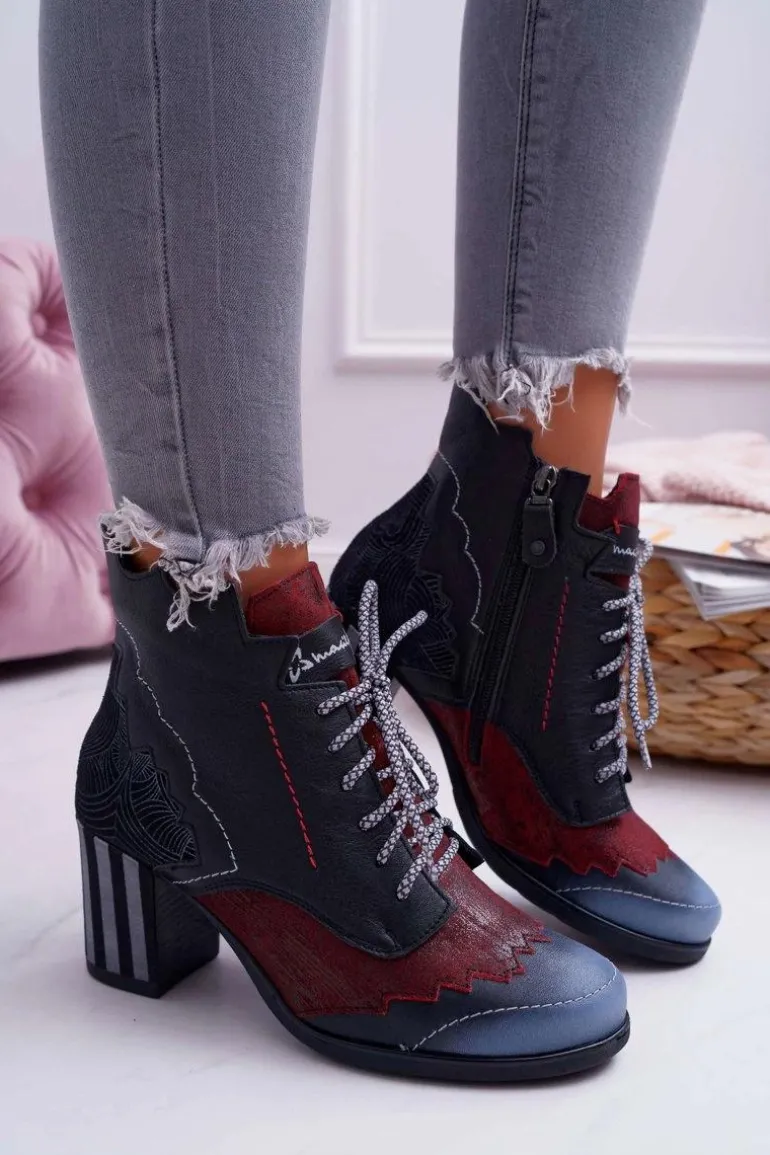 Botki Damskie Skórzane Trzewiki Maciejka Czarne 03190-01