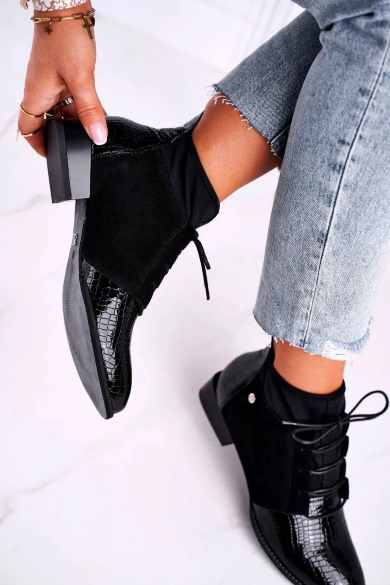 Botki Damskie Skórzane Trzewiki Maciejka Czarne 04744-20