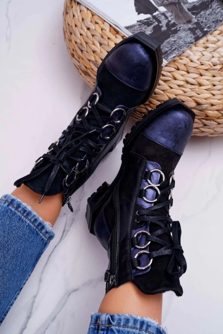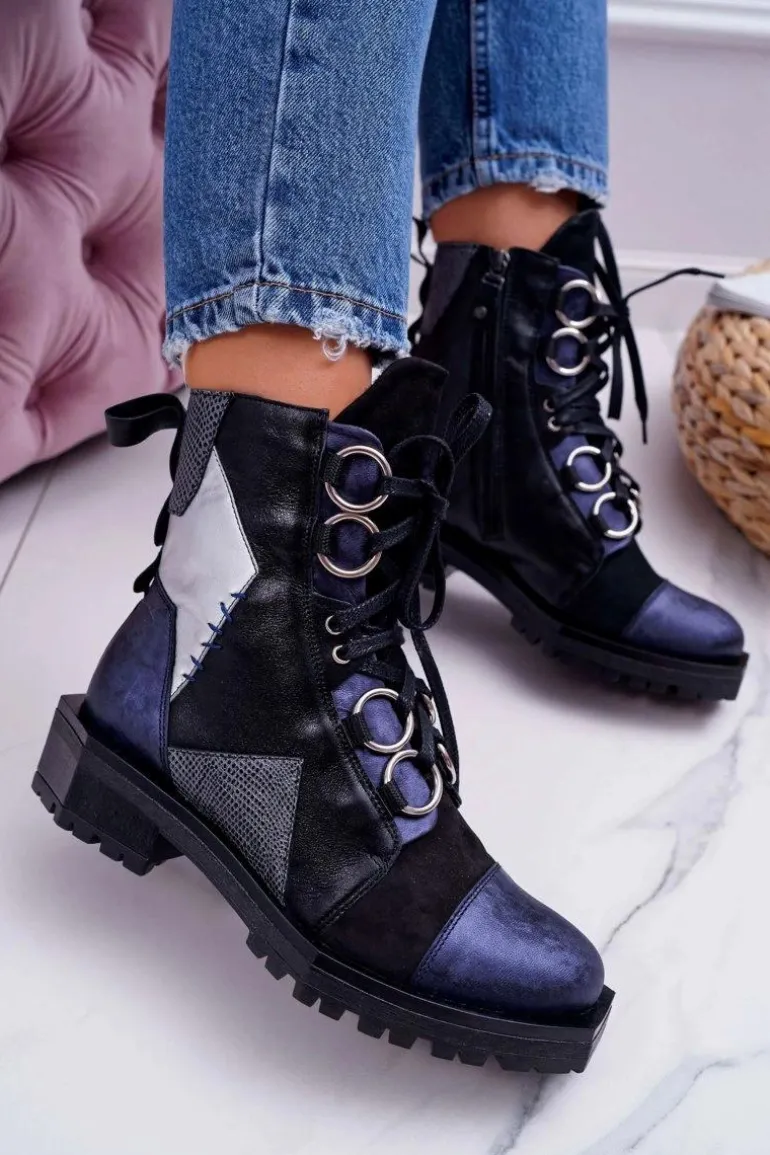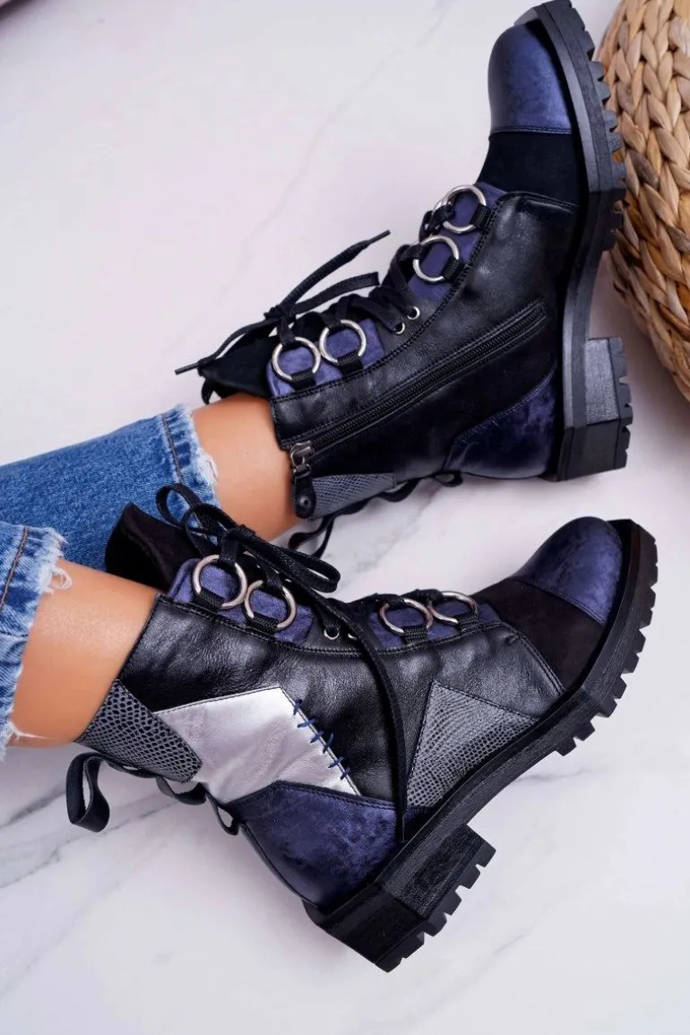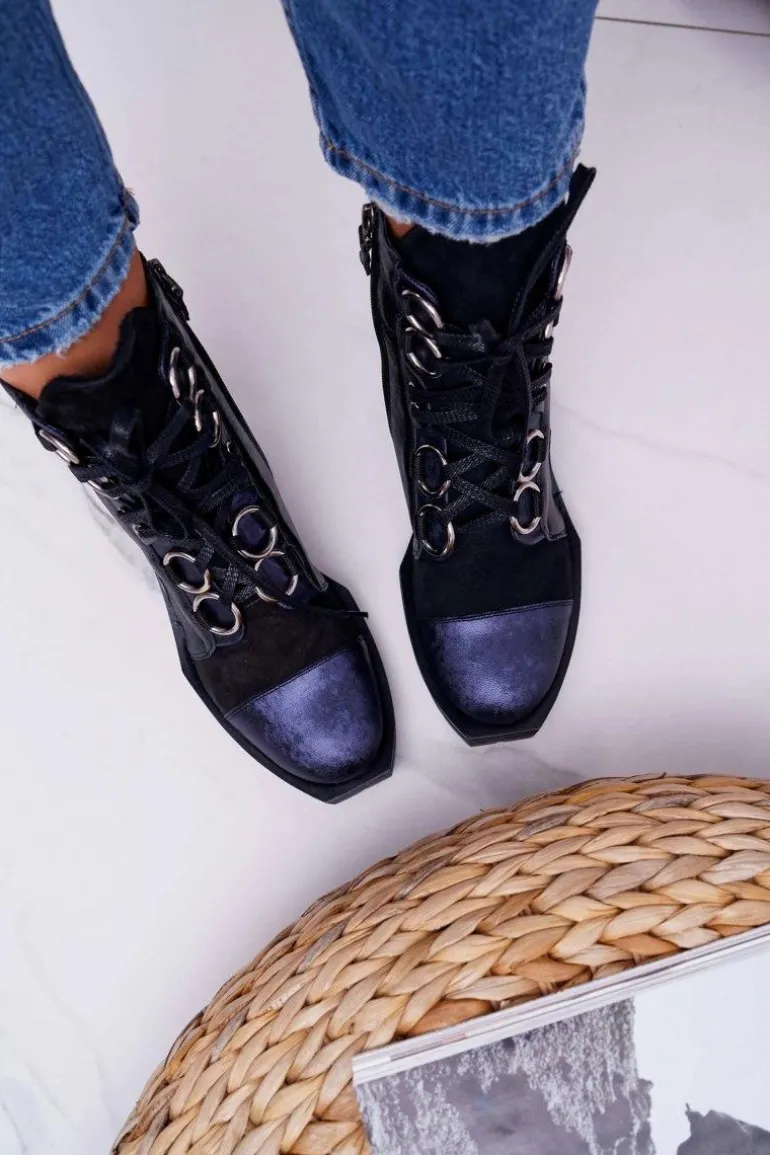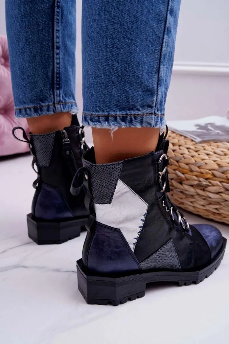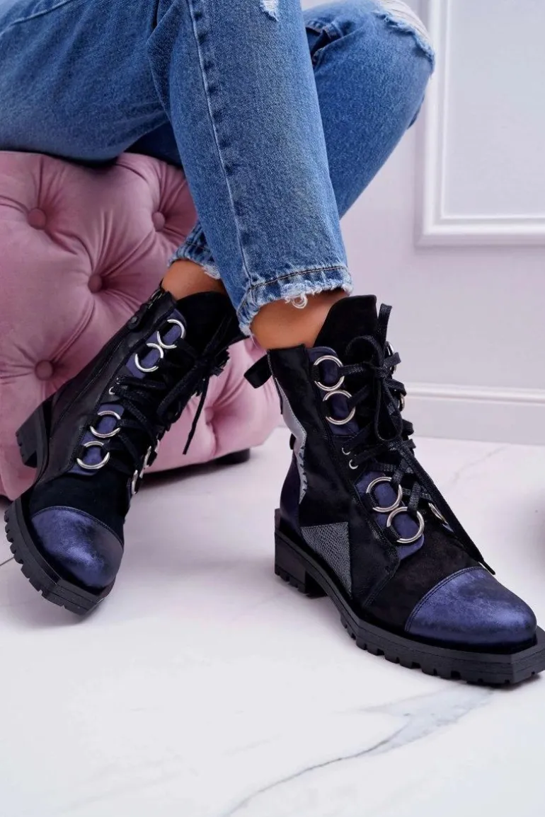 Botki Damskie Skórzane Trzewiki Maciejka Granatowe 04184-17/00-3
