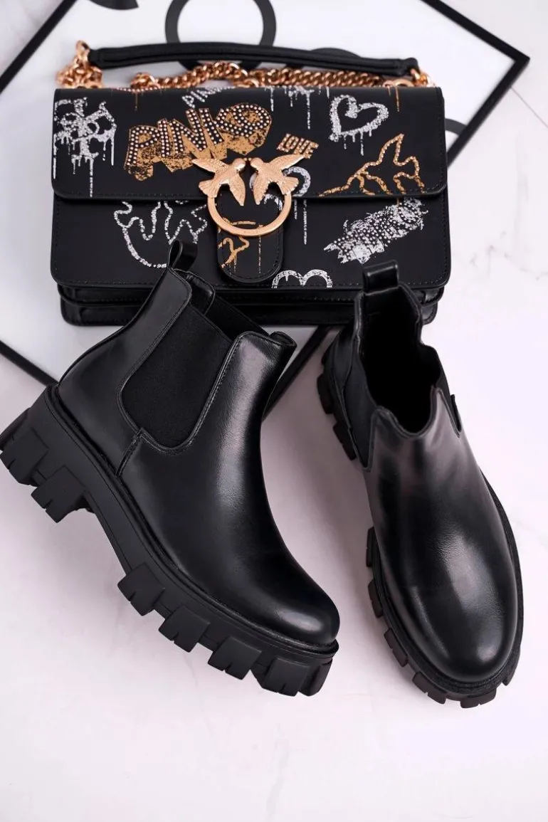 Czy może nas coś jeszcze zaskoczyć? Oczywiście! Spójrz na te przepiękne botki! Botki wykonane ze skóry ekologicznej, wewnątrz ocieplone kocem obuwniczym z krótkim włosiem, więc o ciepło w chłodnie dni nie musisz się martwić. Masywna podeszwa, wysoka cholewka połączona z gumami – botki świetnie wpiszą się w stylizacje glam rock lub grunge. Przy wyborze rozmiaru prosimy sugerować się tabelą rozmiarów.