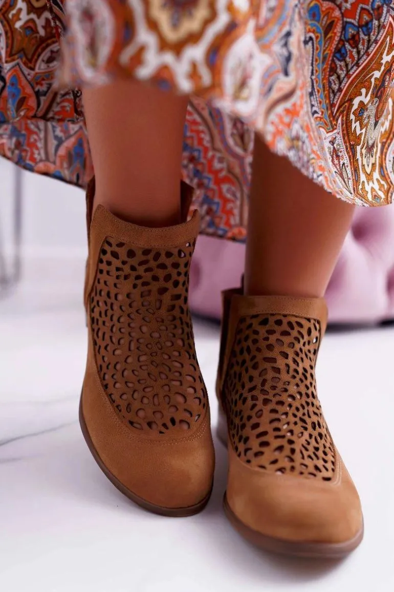 Botki Damskie Wiosenne Kowbojki Camel 2366 Draw