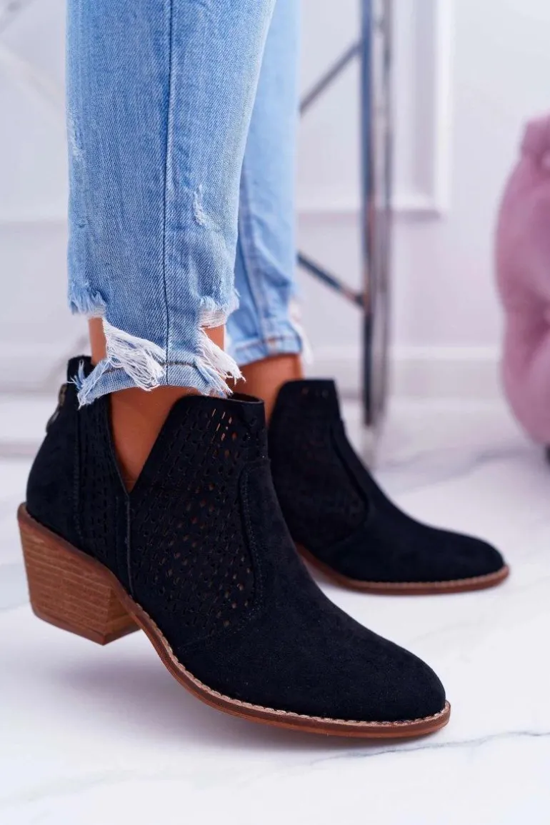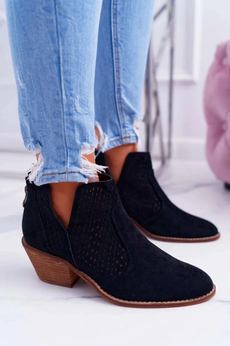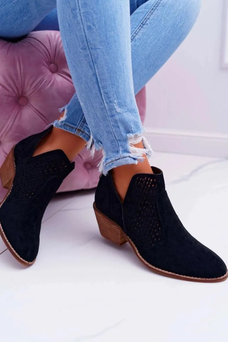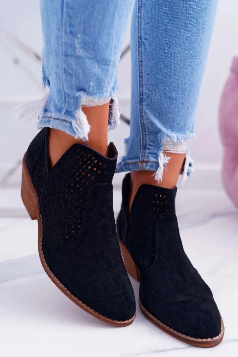 Botki Damskie Wiosenne Kowbojki Czarne Matty