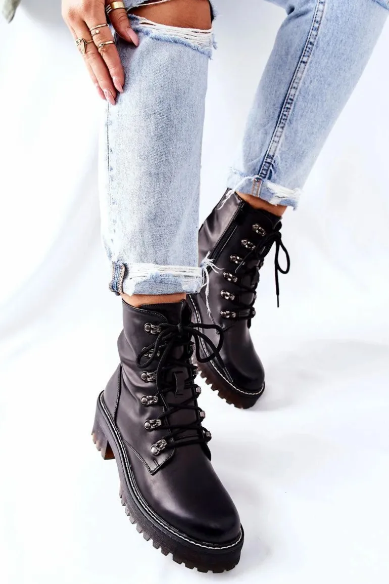Sztywna cholewka, masywna podeszwa, klasyczny fason ze sznurowaniem. Odporna na zabrudzenia skóra ekologiczna. Przy wyborze rozmiaru prosimy sugerować się tabelą rozmiarów.