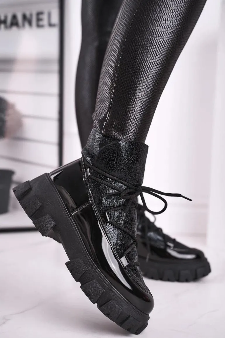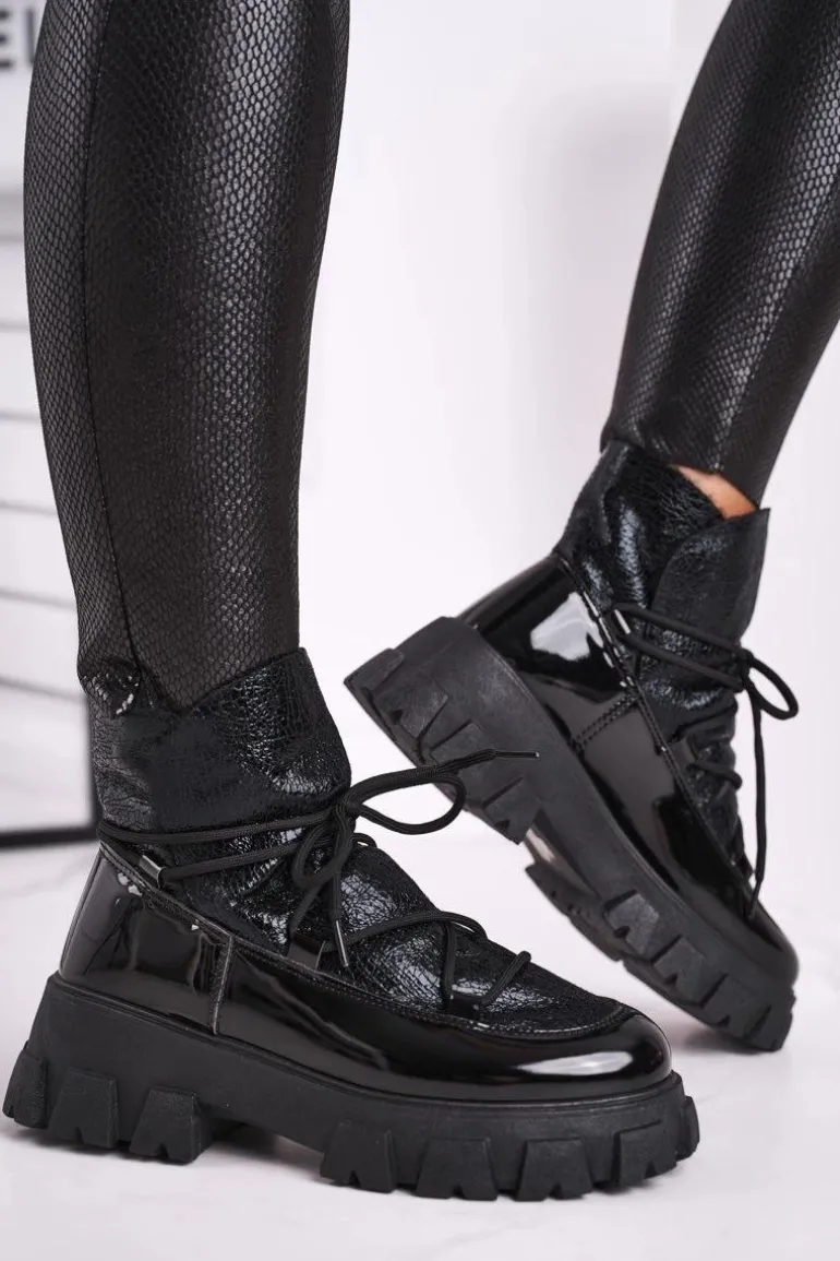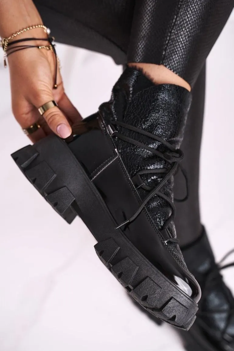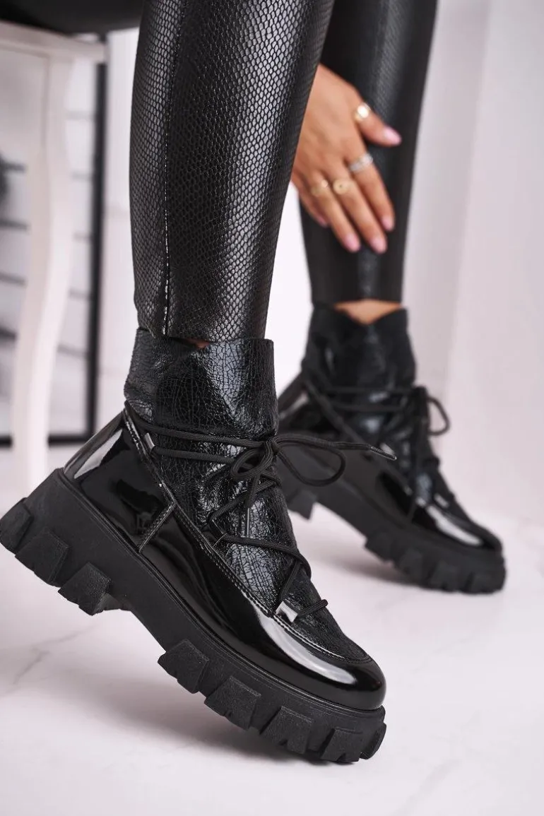 Czy może nas coś jeszcze zaskoczyć? Oczywiście! Spójrz na te przepiękne botki! Botki wykonane ze skóry ekologicznej, wewnątrz ocieplone ciepłym kocem obuwniczym, więc o ciepło w chłodnie dni nie musisz się martwić. Masywna podeszwa, wysoka miękka cholewka – botki świetnie wpiszą się w stylizacje glam rock lub grunge. Przy wyborze rozmiaru prosimy sugerować się tabelą rozmiarów.